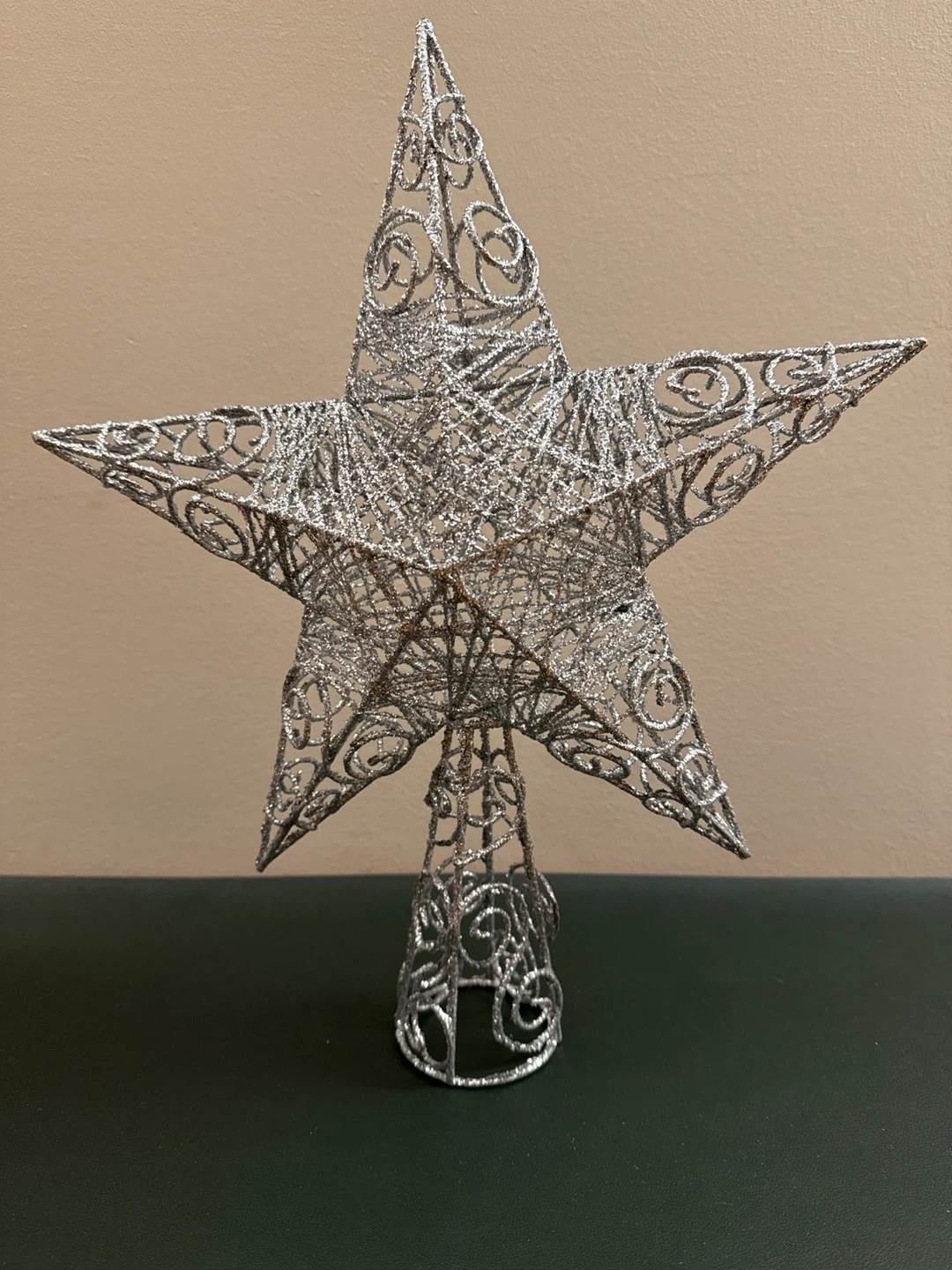 Add a touch of sparkle to your Christmas tree with this beautiful silver wire star tree topper! It's in great condition and ready to bring some holiday cheer to your home