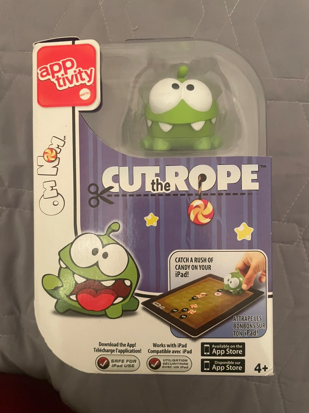 Selling a Cut the Rope Om Nom figure! This adorable figure enables a special game mode. It's compatible with iPads and iPhones. Comes with 1 figure and 1 card.