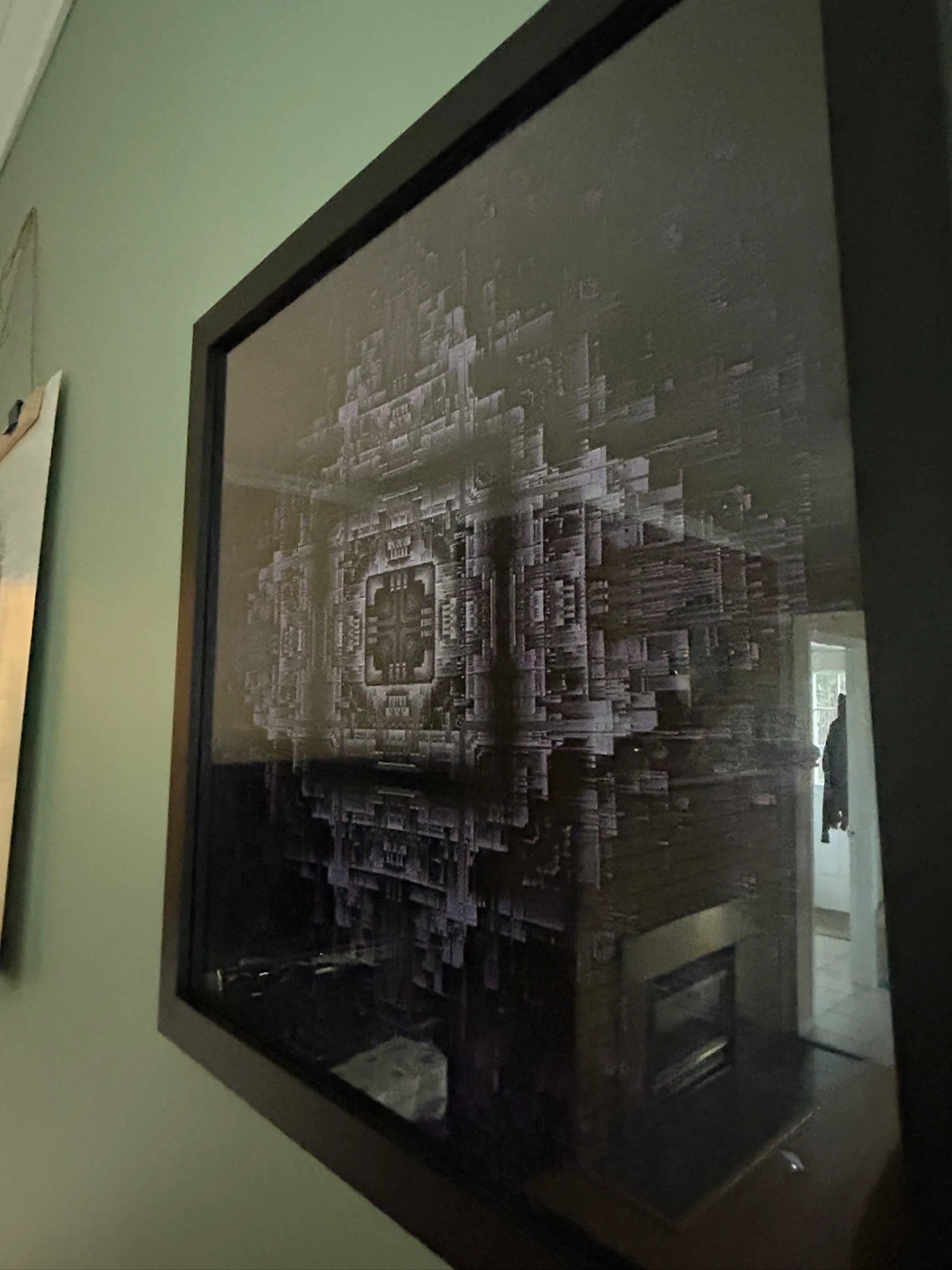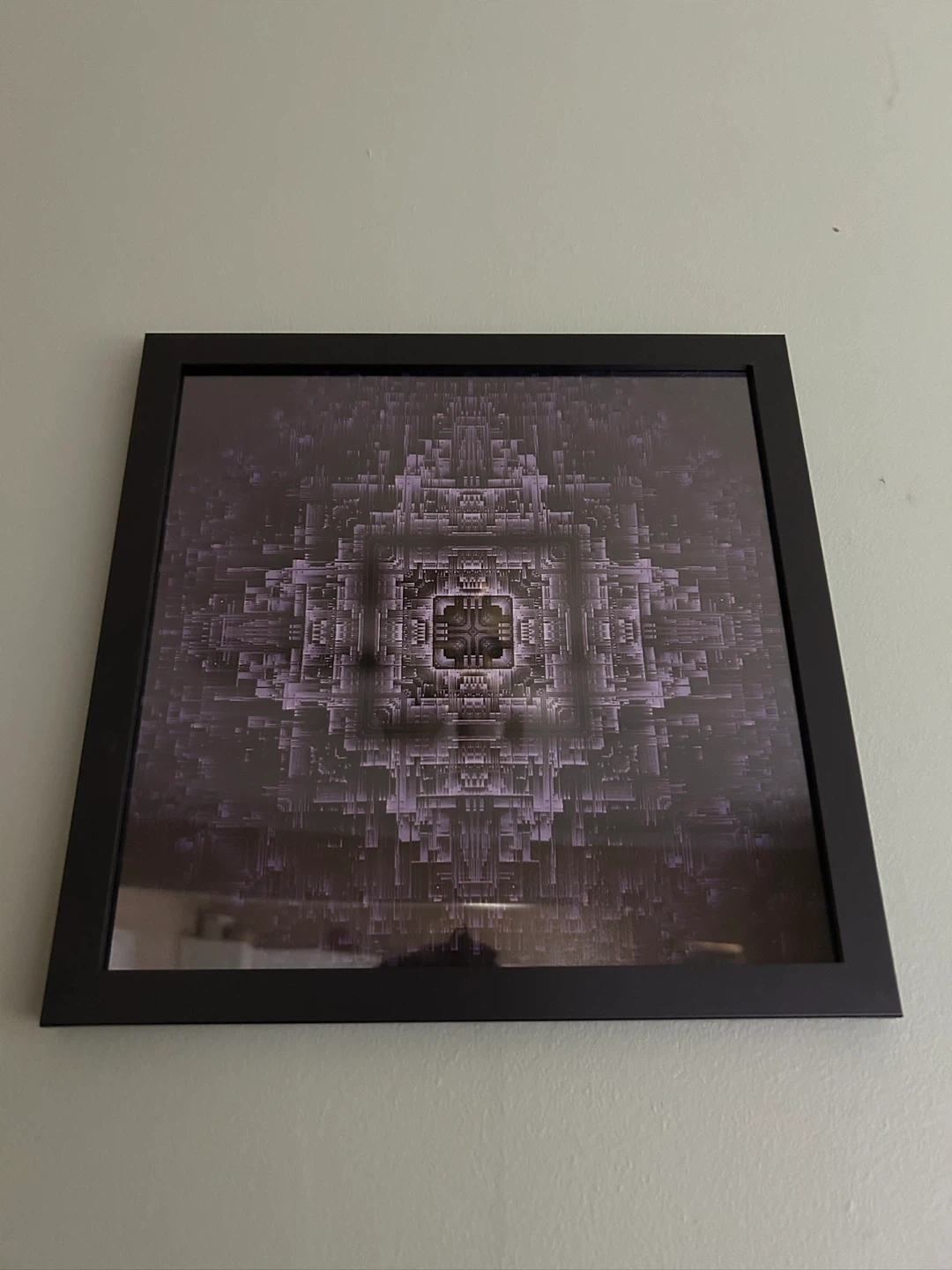 Selling a framed art print. The dimensions are 13x13. It features an abstract design in black and grey tones. It's in great condition and ready to hang in your home!