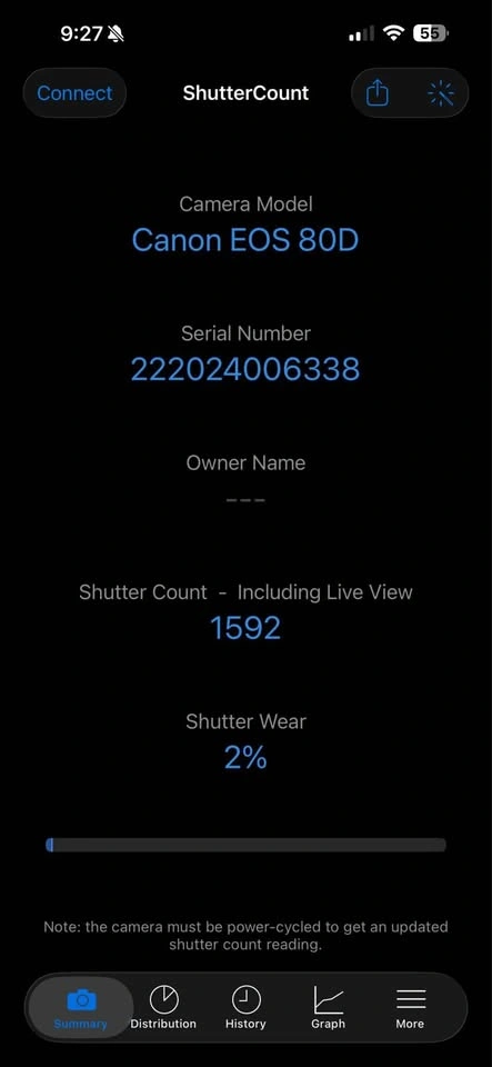 Shutter count: 1,592 Rated for 200,000