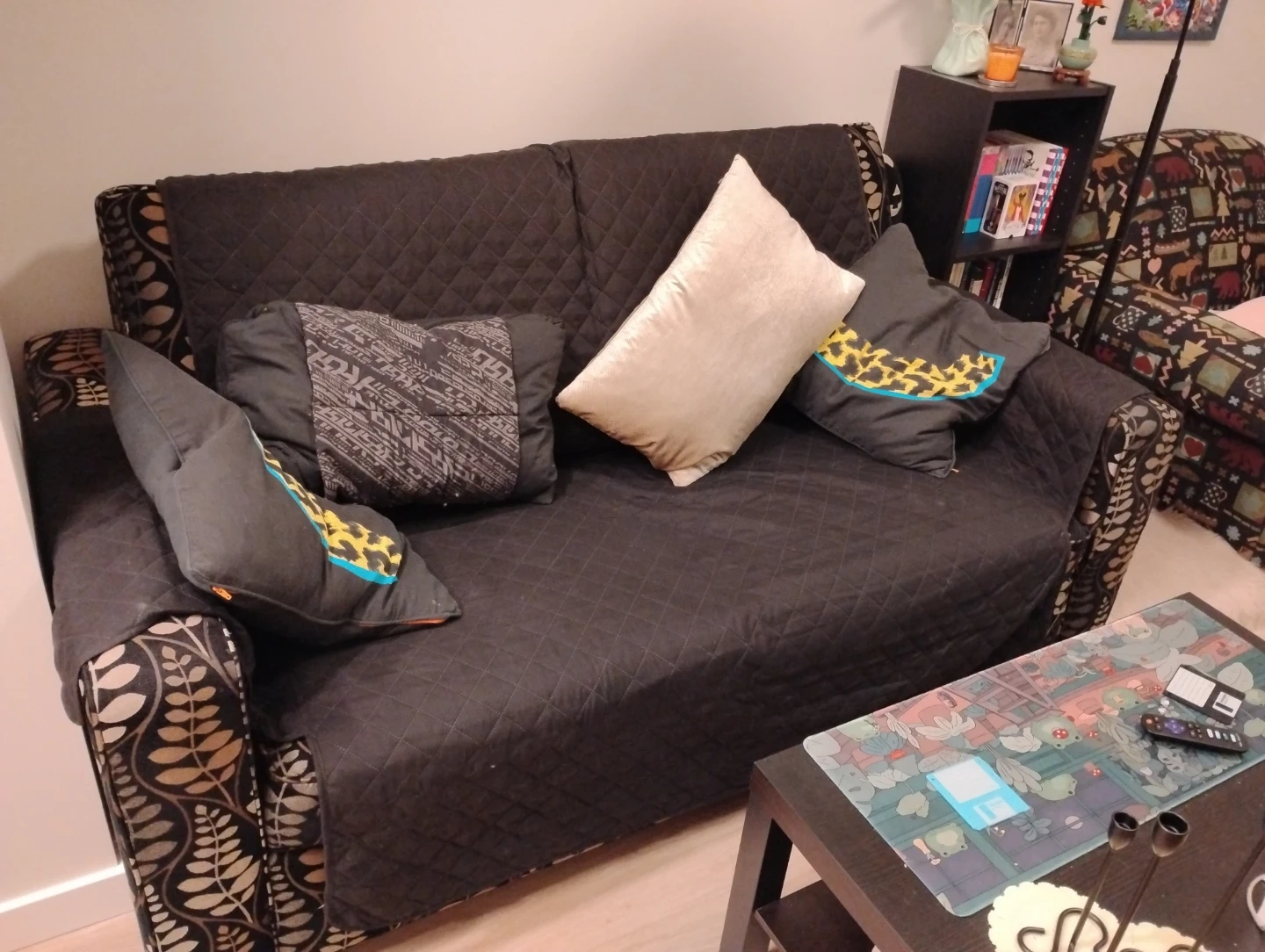 Selling a sofa bed that easily pulls out into a sleeper. It's in good condition and perfect for guests or small spaces. It's a great way to maximize space and have an extra bed when needed!