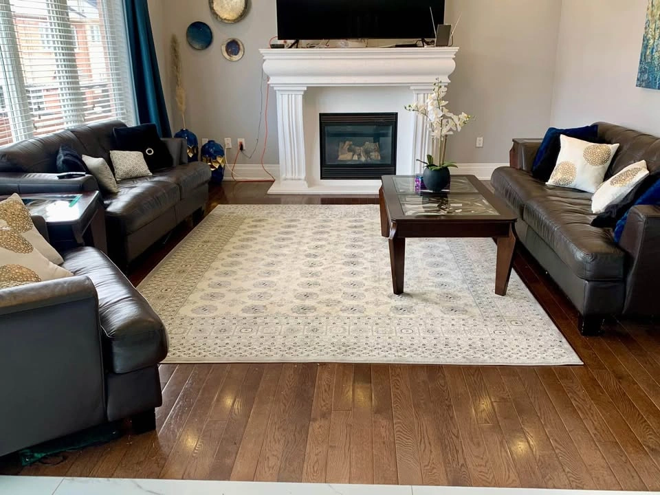 This used set includes a sofa, loveseat, and chair, all featuring a beautiful dark brown leather. Perfect for a living room looking for a stylish and comfortable seating arrangement. This set is in good condition, showcasing the quality and durability of genuine leather. Not including coffee table. Bought from Leons.