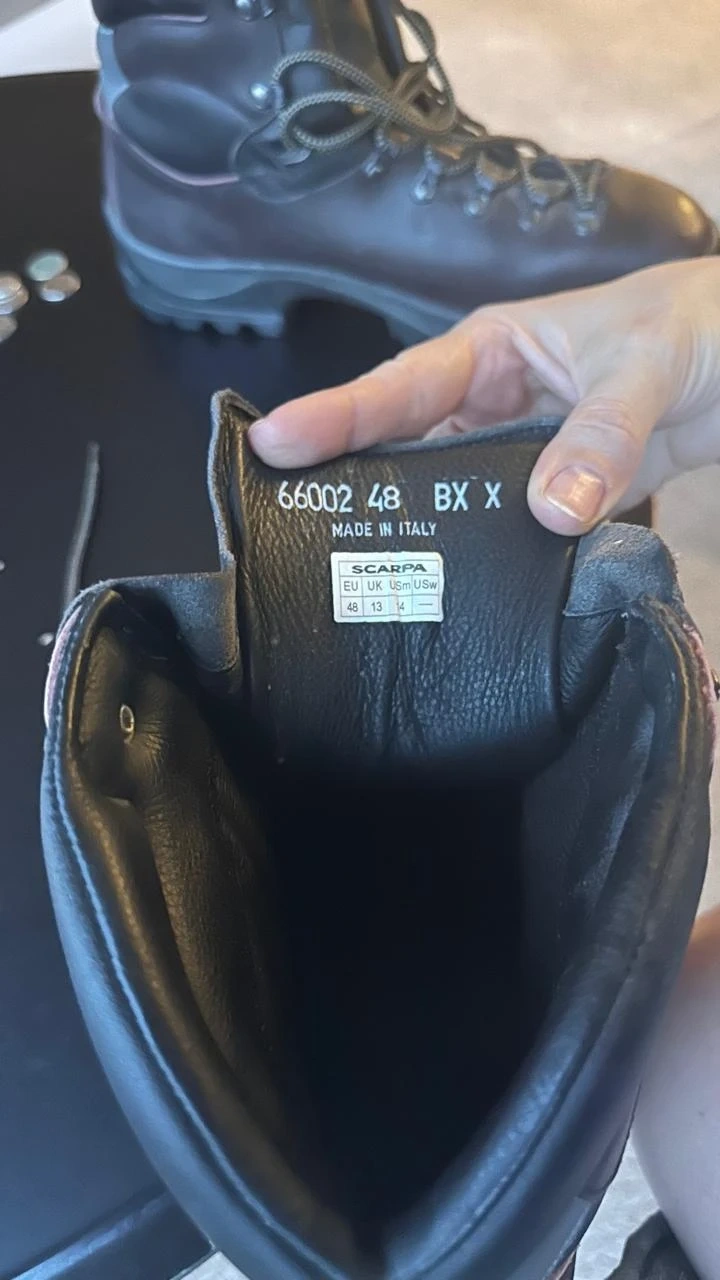 Selling a pair of Scarpa hiking boots! They are a size 48 EU, which is approximately a size 13 US. They are in great condition for hitting the trails. They have been out on the hike couple times only.