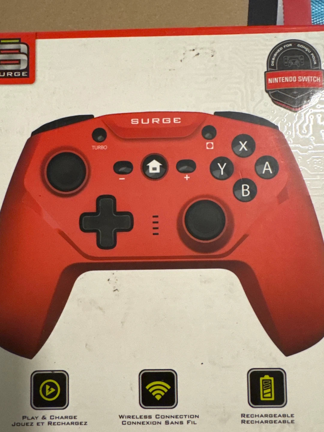 Selling a Surge Switchpad wireless controller in red! It's compatible with Nintendo Switch, Switch Lite, and Switch OLED.
