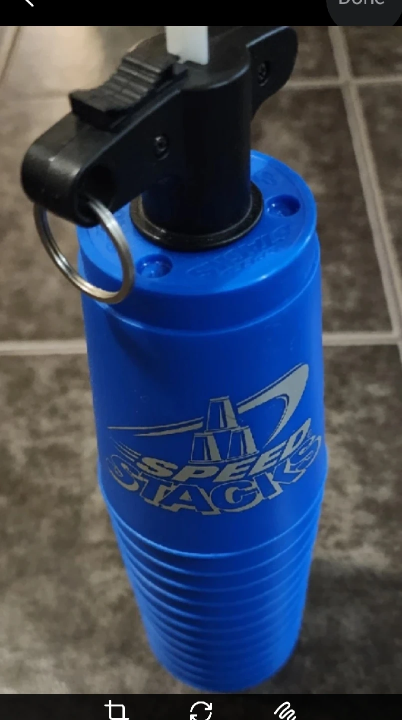 Here's a set of Speed Stacks in blue! Great for developing hand-eye coordination and having fun. They're in good condition and ready for a new home