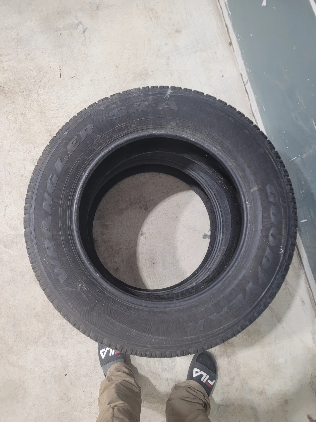 Selling a pair of Goodyear Wrangler tires, size P275/60R20. They're in used condition, but still have some life left in them! Great for SUVs and trucks.
