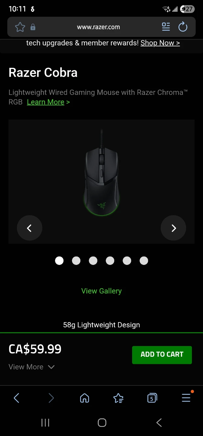 Selling a Razer Cobra gaming mouse! It's a lightweight wired mouse with Razer Chroma RGB. The mouse is in great condition and ready for a new owneronly used once and decided i like my xbox controller more . Originally bought for $59.99! Ill take trades