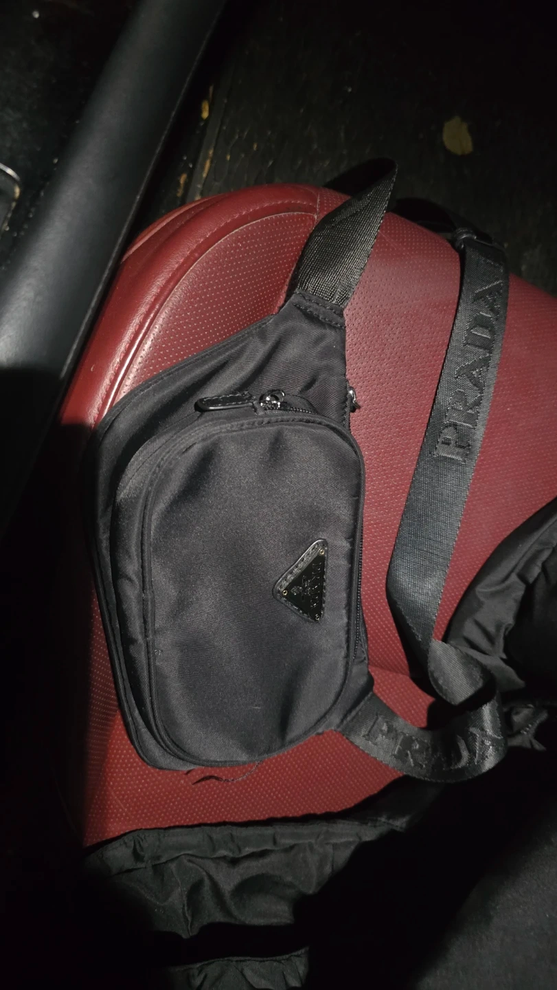 Selling a Prada crossbody bag in black nylon. It's in great condition and perfect for everyday use. The bag features the iconic Prada triangle logo and an adjustable shoulder strap. 200 obo. Missing one zipper flap but isn't noticeable.