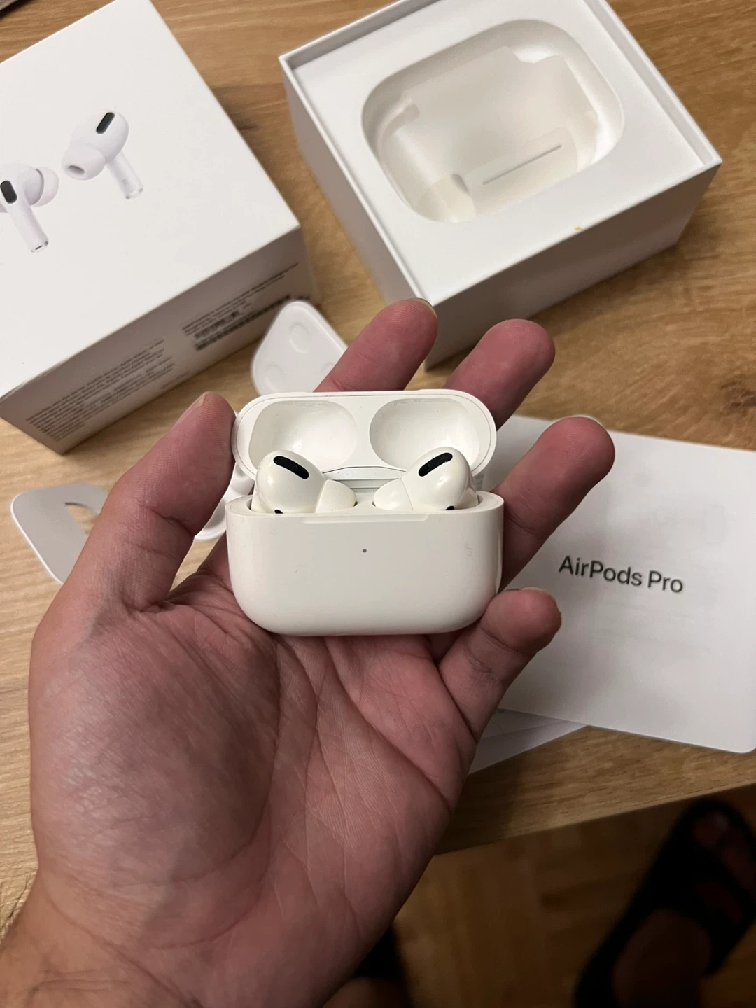 Selling my authentic Apple Airpods Pro 1st gen, complete with box, papers and original eartips. I have been using it for the past few years and it never failed me. Awesome sound quality! The active noise cancellation and transparency mode still works! If you have some questions please feel free to ask me. Price is still slightly negotiable.