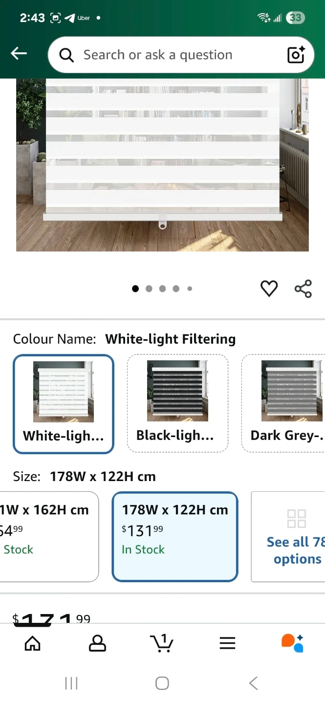 Selling a brand new set of cordless zebra blinds! These are white-light filtering and measure 70 inches wide by 48 inches high (177.8cm x 122cm). They offer window-dual layer sheer blinds with valance day night privacy and light filtering fabric. Great for adding a touch of elegance and privacy to any room!
