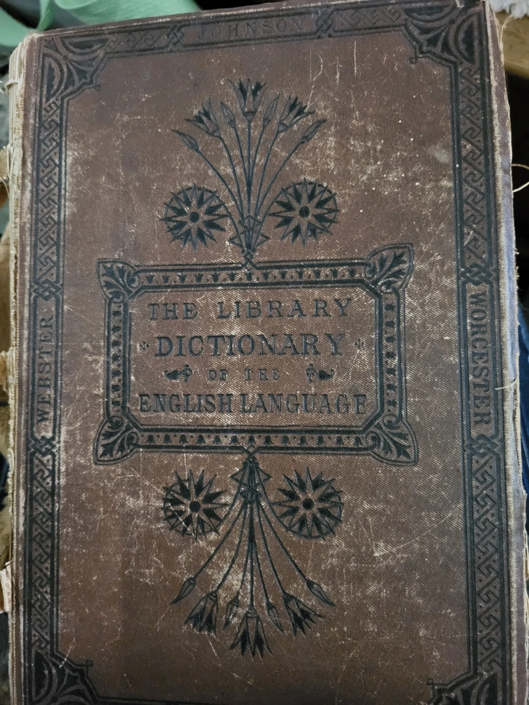 Selling a vintage copy of The Library Dictionary of the English Language. It's a beautiful piece with intricate detailing on the cover. A unique addition to any book collection!