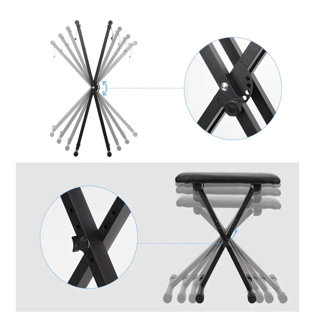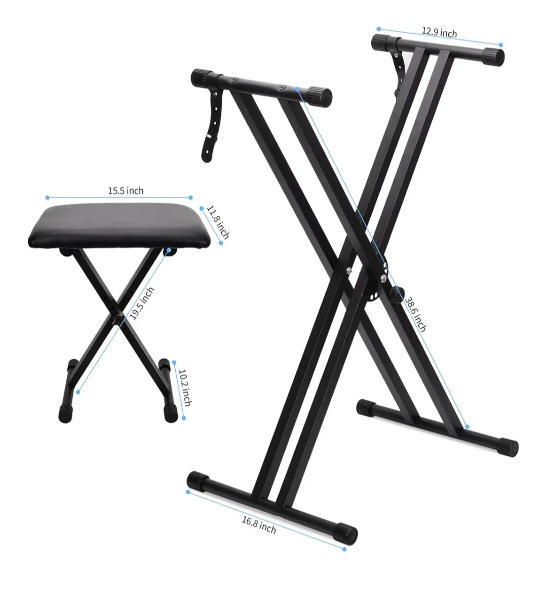 Selling a keyboard stand and bench set! This double-X style stand is adjustable and comes with locking straps. The bench is also foldable for easy storage and transport. Great for musicians looking for a sturdy and portable setup