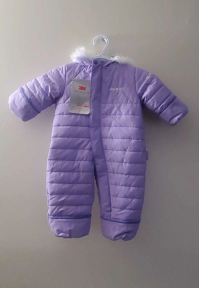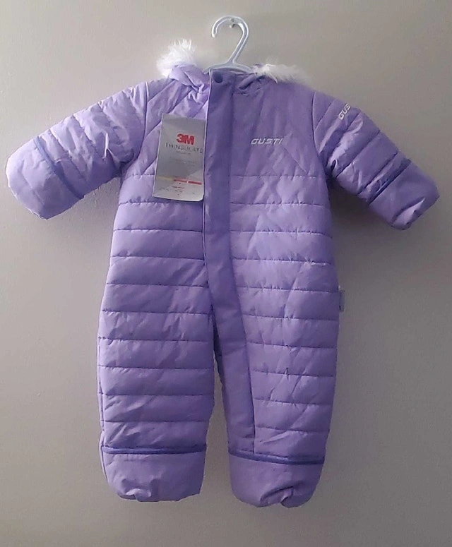 Adorable brand new Gusti snowsuit, size 9 months, featuring 3M Thinsulate insulation for superior warmth without the bulk. Specifications: * Brand: Gusti * Insulation: 3M Thinsulate * Colour: Purple * Size: 9 Months If the ad's still up, the snowsuit is available, so no need to ask! Get ready for some cute and cozy winter memories!