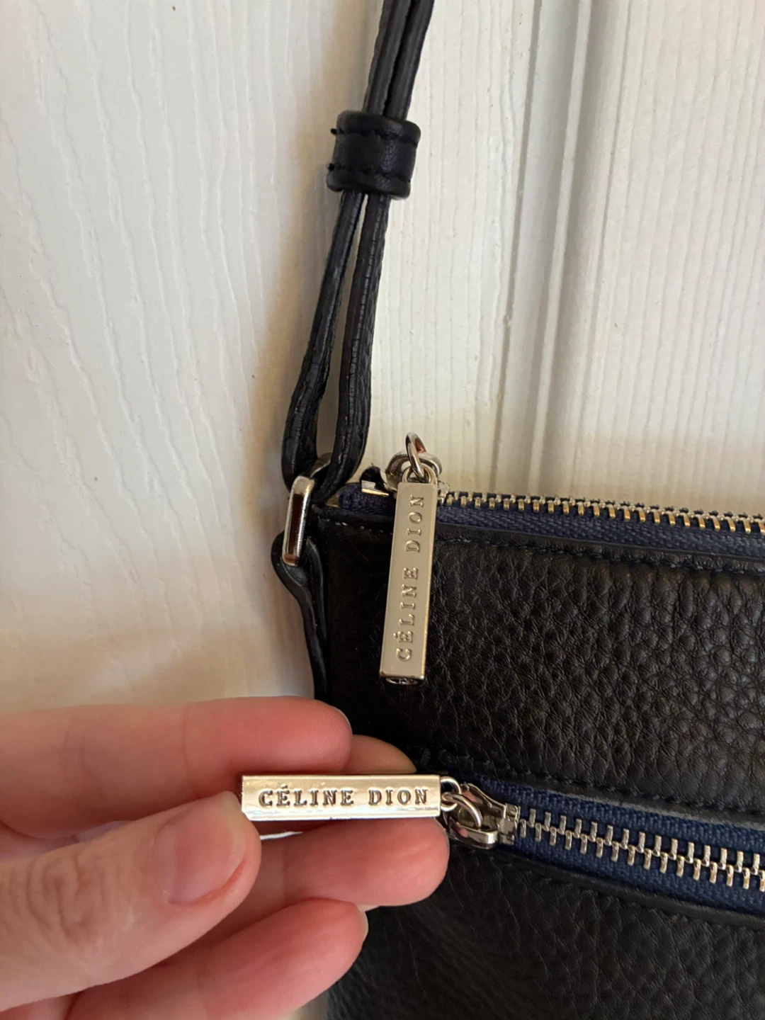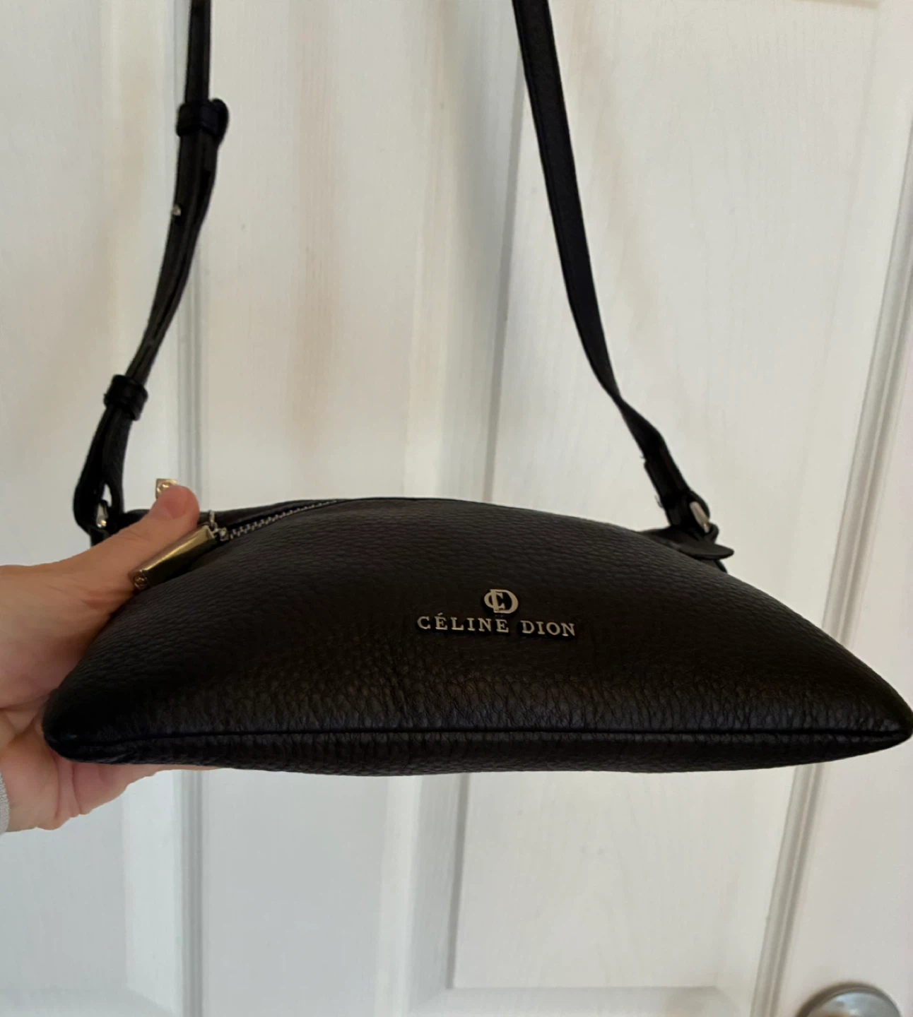 Céline Dion black leather crossbody