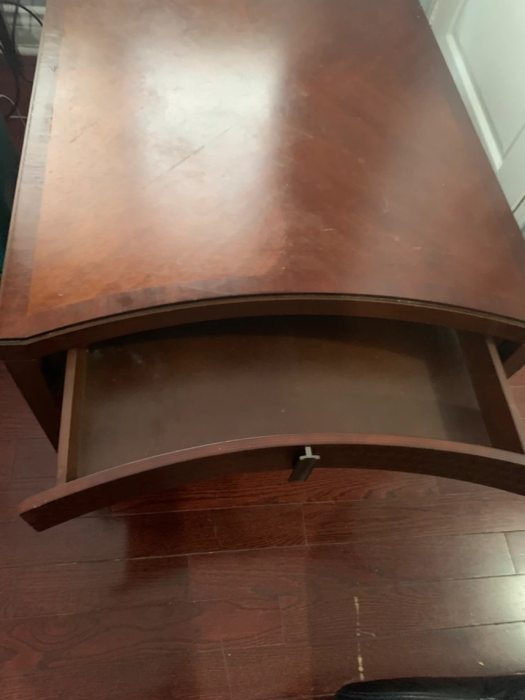 Selling a wooden end table with a drawer. It has a nice, classic look. It's in good condition and would be a great addition to any living room or bedroom