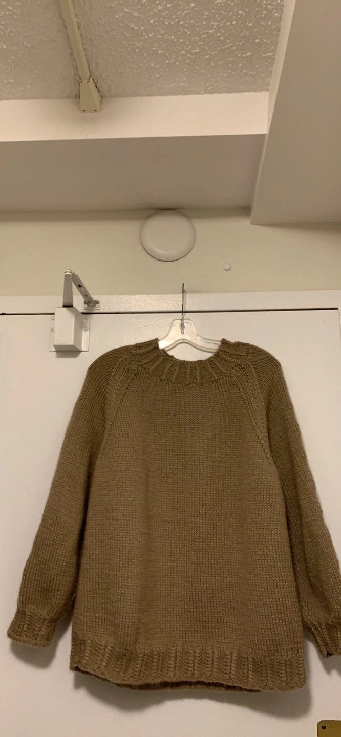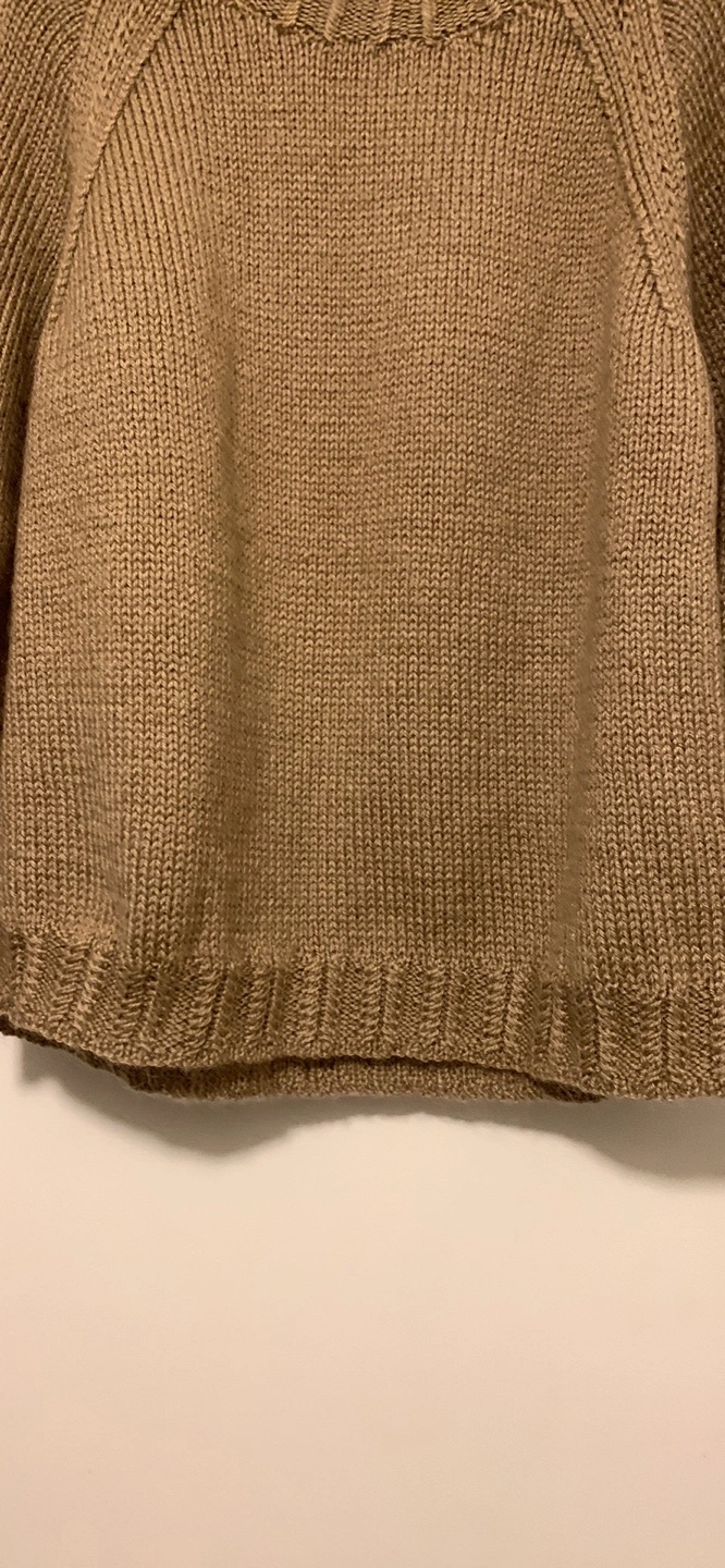 Selling a cozy beige knit sweater! It's in great condition and perfect for the cooler weather. The sleeves have a lovely braided pattern.