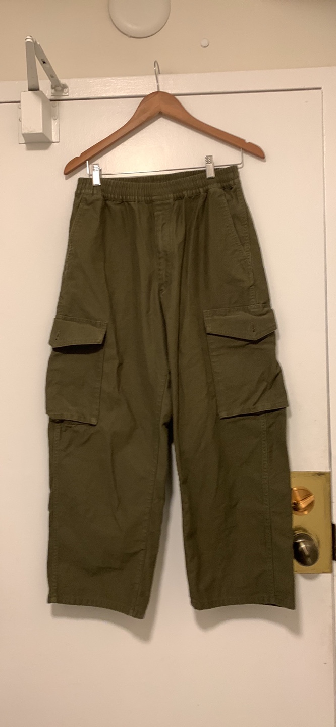Selling a pair of olive green cargo pants. They're in good condition and ready for a new home!