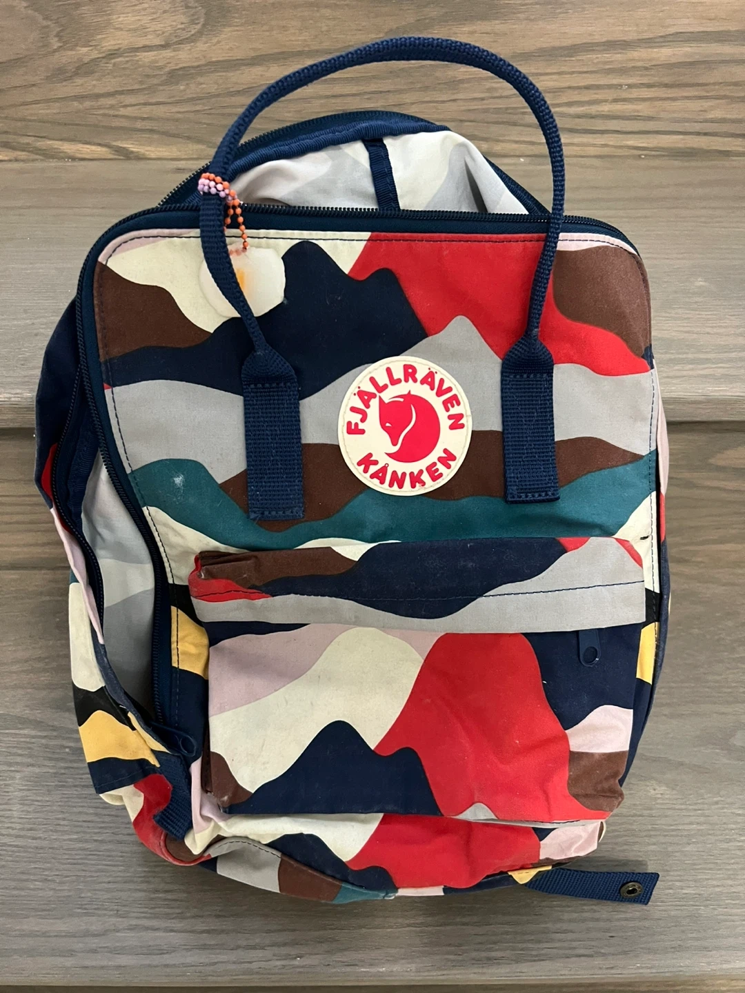 Selling a Fjallraven Kanken Mini backpack! It's in great shape and features a unique patterned design. Perfect for everyday use or as a stylish accessory!