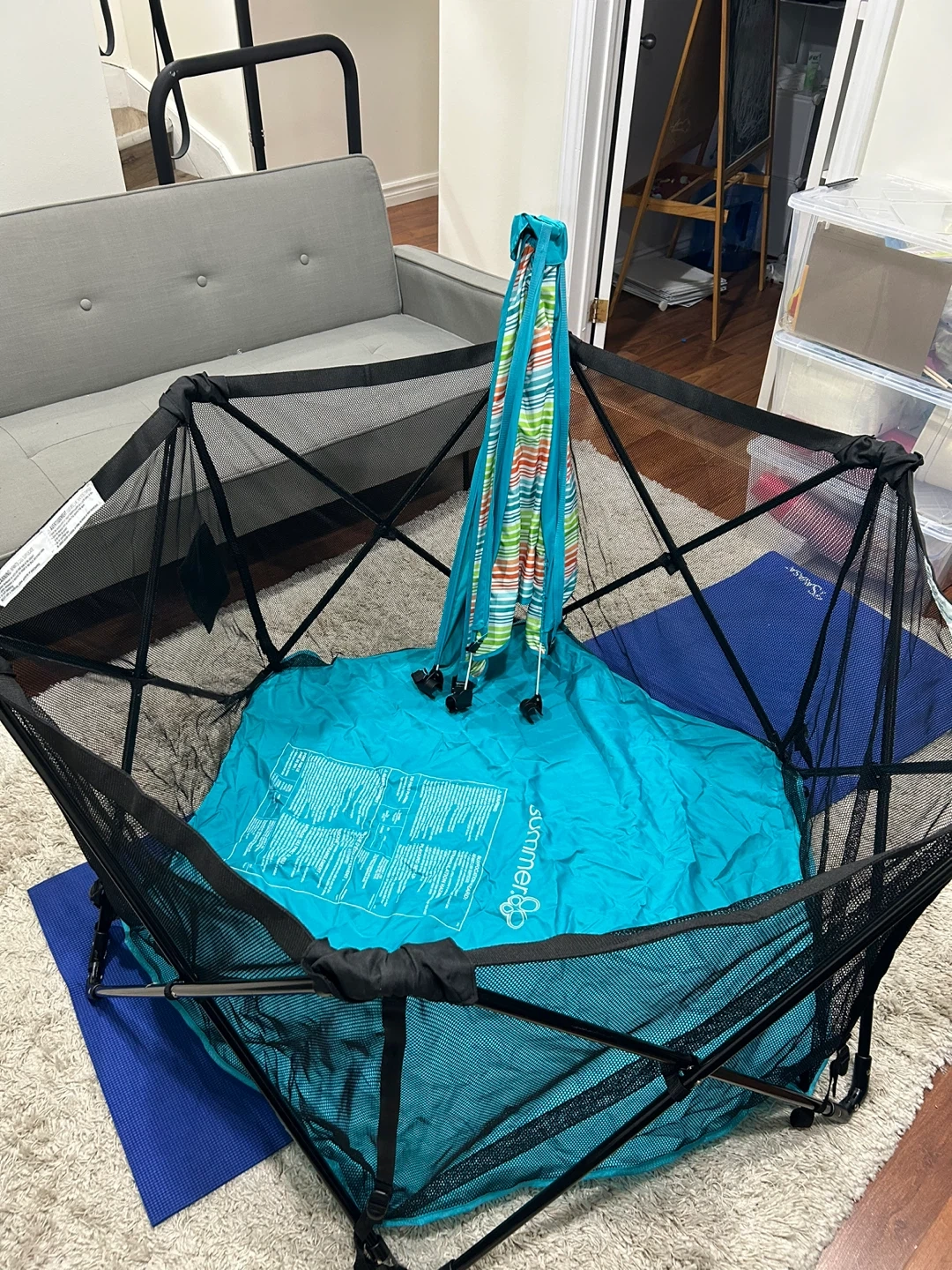Selling a Summer Infant Pop 'n Play Ultimate Playard with Canopy! It's in mint condition (barely used). This playard is perfect for keeping your little one safe and entertained, whether you're at home or on the go. Originally bought for $105.99!