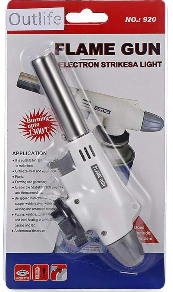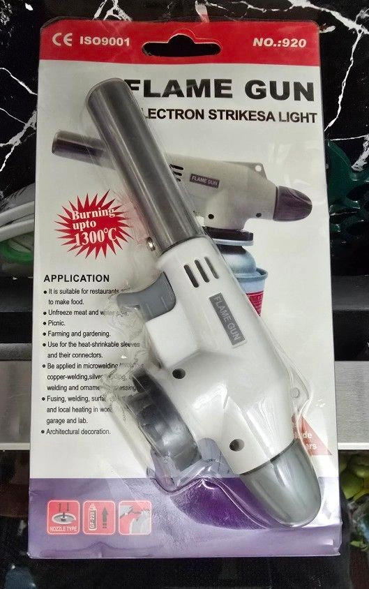 It uses a butane cartridge with a notched collar. The item is a unit type and the package includes one butane torch gun. The model is adjustable flame gun butane blow torch with ignition and it is manufactured in China. This product is suitable for those who need a reliable and efficient heat source for their projects.