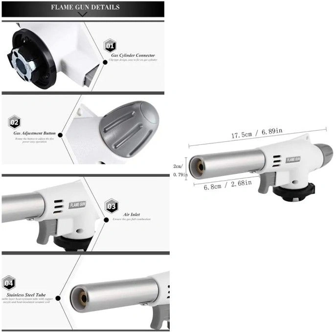 Adjustable Butane Flame Gun Blow Torch Head w/ Electronic Trigge
