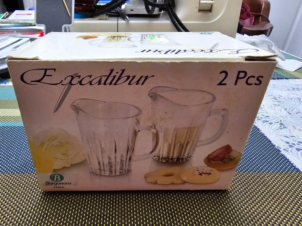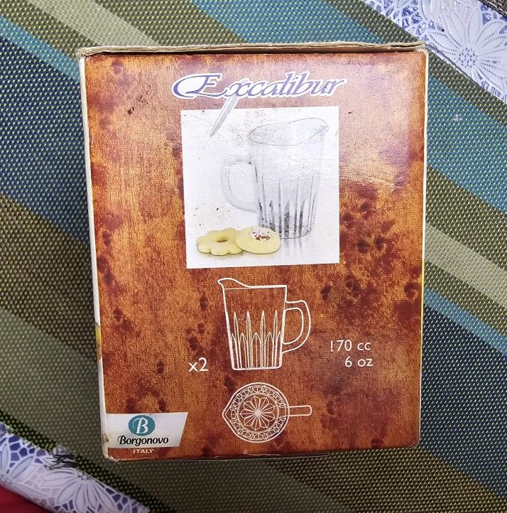 Crafted with care and attention to detail, this creamer set is perfect for any antique or modern home. The Excalibur brand is known for its high-quality glassware, and this creamer set is no exception. Whether you're hosting a formal dinner party or just enjoying a casual cup of coffee, this creamer set is sure to impress. Made by Borgonovo Italy.