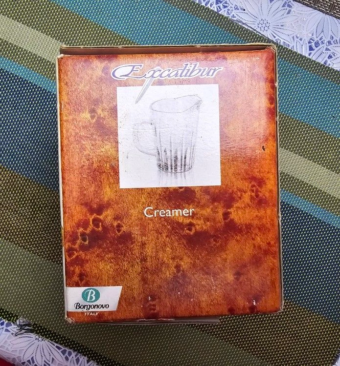 Add a touch of elegance to your coffee or tea time with this Excalibur 2-piece creamer set, made in Italy. The round glass creamer has a capacity of 170 cc and is machine washable for easy maintenance. The set comes in a boxed packaging, making it a perfect gift for any creamer collector.