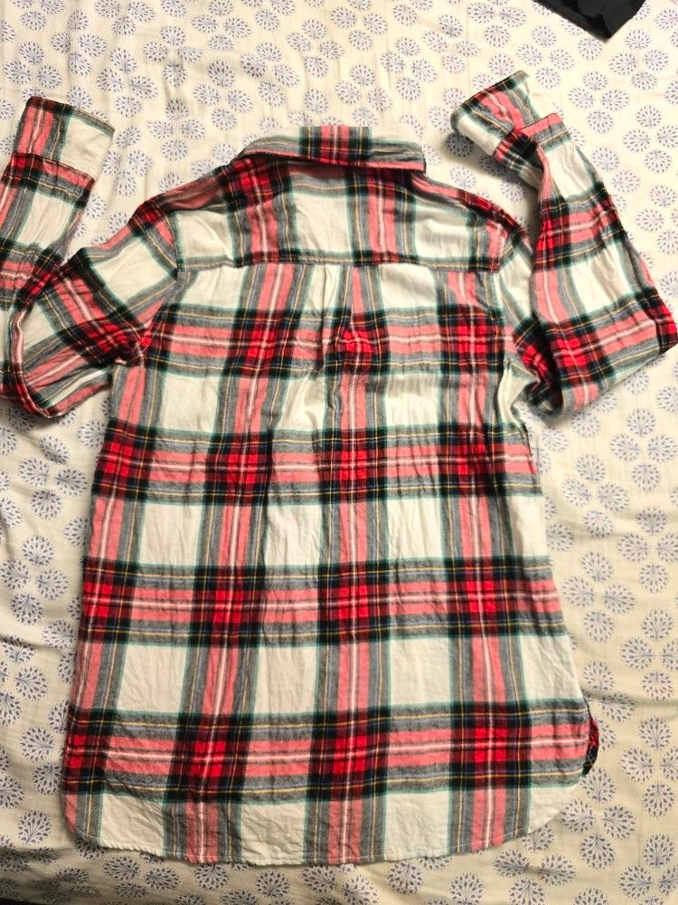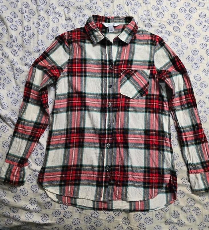 This Old Navy boy's shirt is a classic plaid shirt in size S. It features a button-down collar and long sleeves, with a flannel fabric type that makes it suitable for all seasons. The shirt is machine washable and has a medium fabric wash, ensuring that it will last for a long time.
