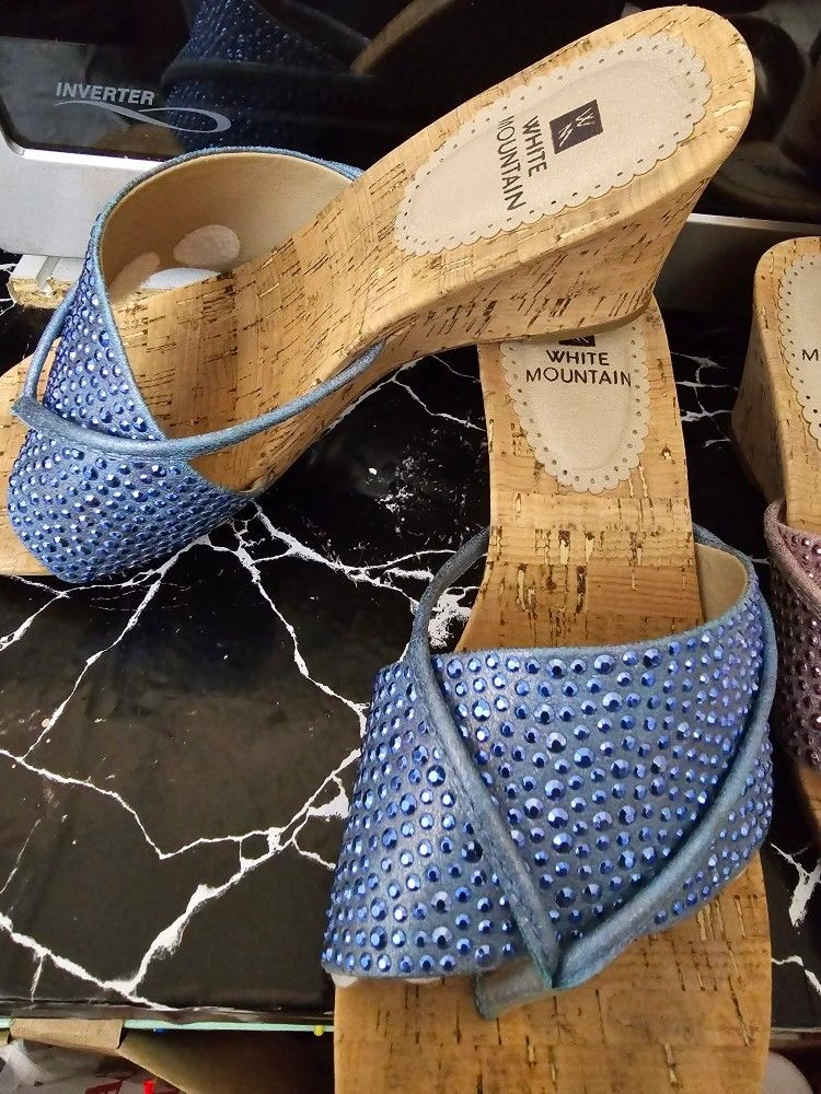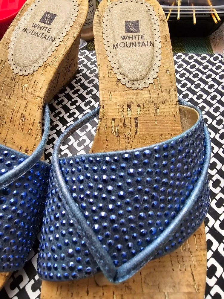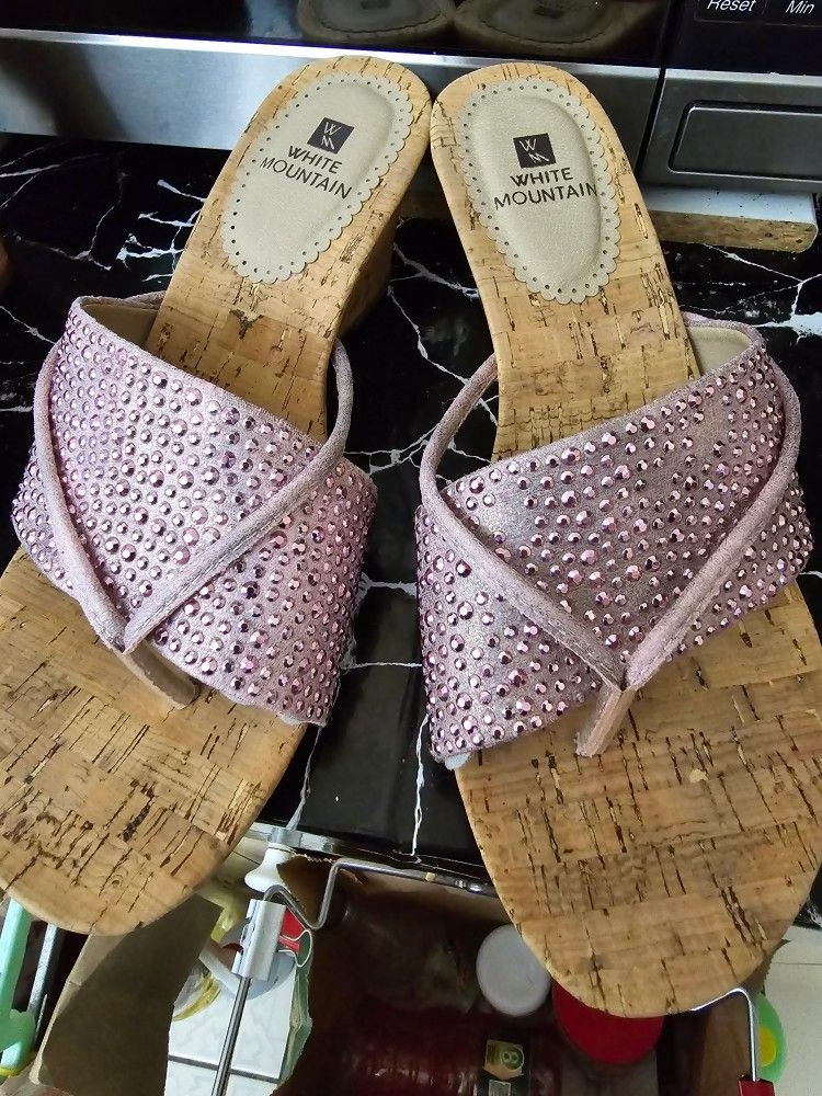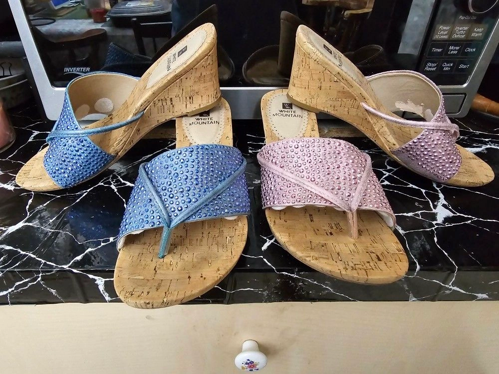These White Mountain ladies' slide sandals are the perfect addition to any casual outfit. The pink and blue colors with added glitter and studs make them a fun and stylish choice for the spring and summer seasons. The shoes are made with a fabric upper and synthetic outsole for durability and comfort.