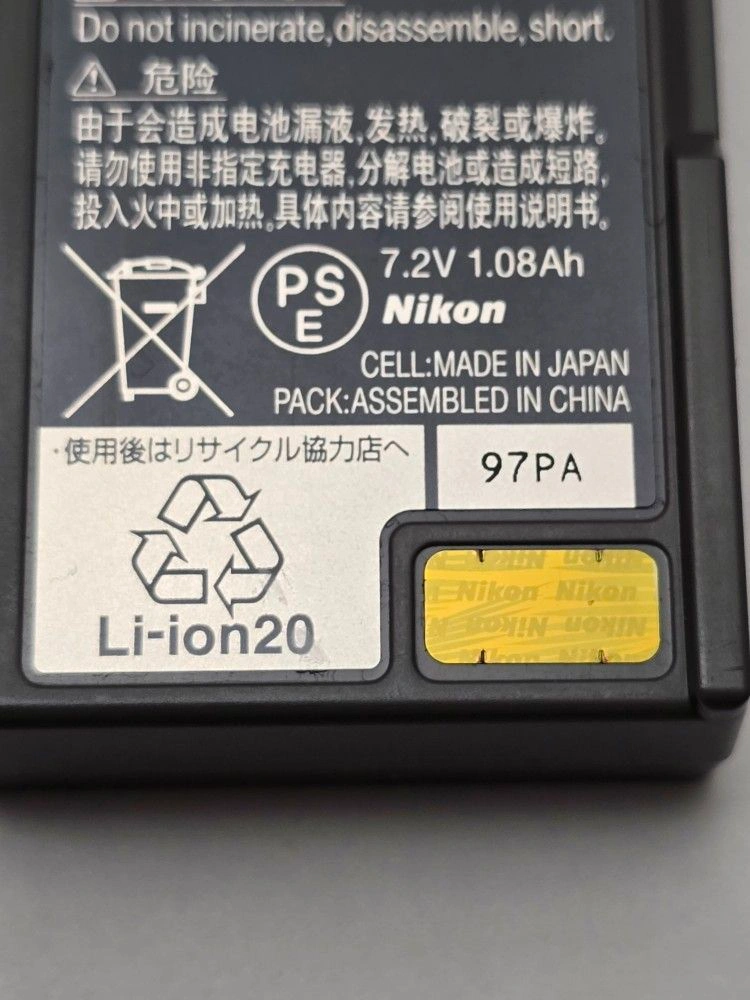 The Nikon EN-EL9a Lithium-Ion Battery is an OEM product made in Japan. It is compatible with Nikon D40, D60, and D3000 digital SLR cameras. The battery has a capacity of 1080mAh and weighs 2oz. It is made of Li-Ion chemical composition and is not modified. The battery is designed to fit Nikon cameras and is part of the compatible series for Nikon D cameras.