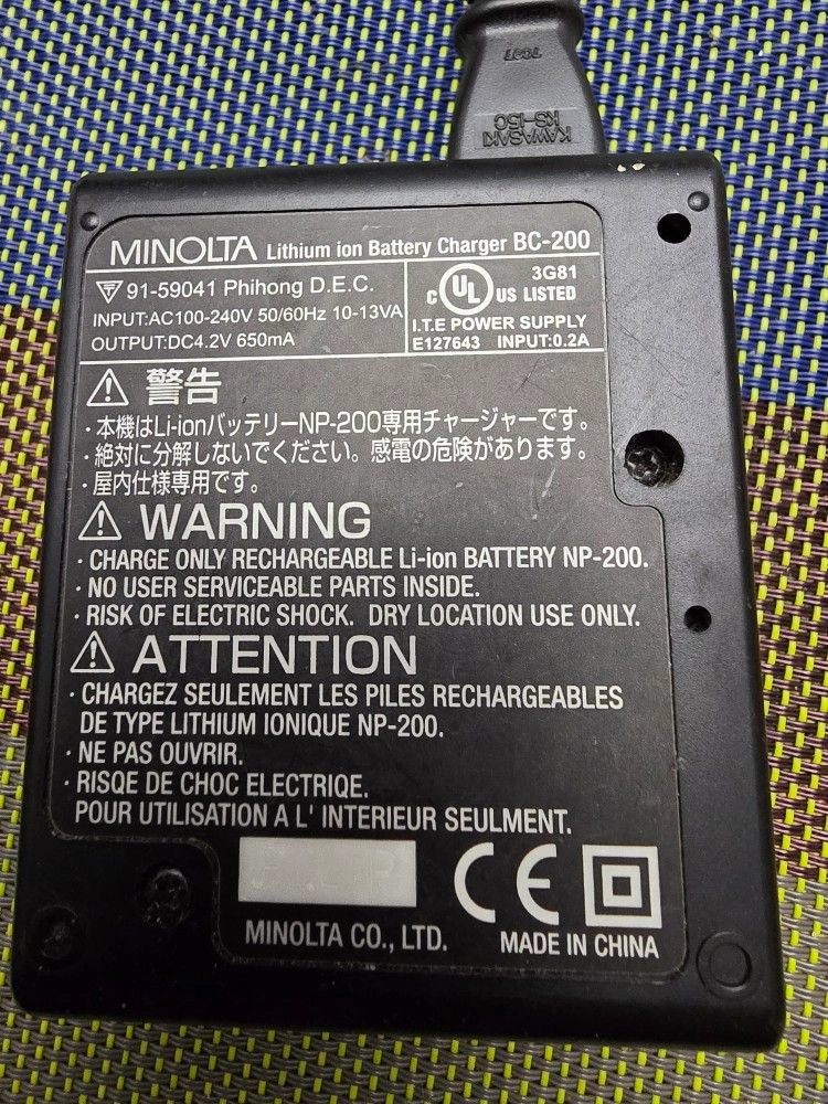 Minolta Lithium Ion BC-200 BATTERY CHARGER with Power Cord