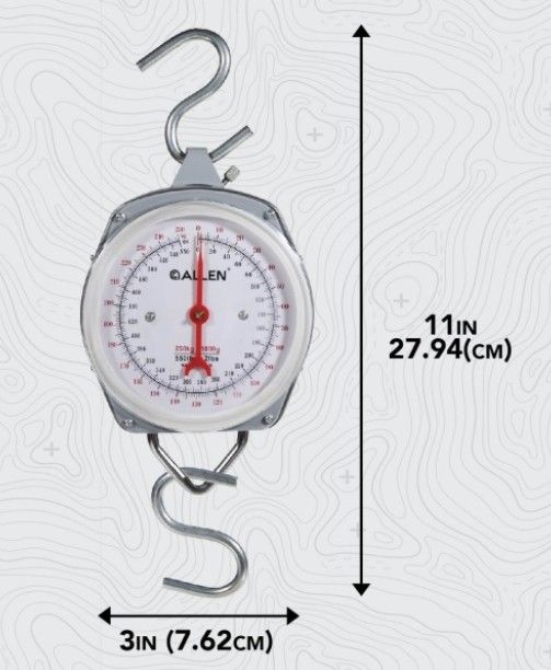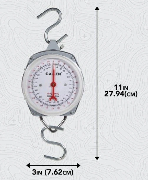 The Sportsman’s Scale by Allen is a 550 pound capacity adjustable tare weight scale to allow for gambrels. Features a sturdy design and a color box. Shows weights in pounds and kilograms.