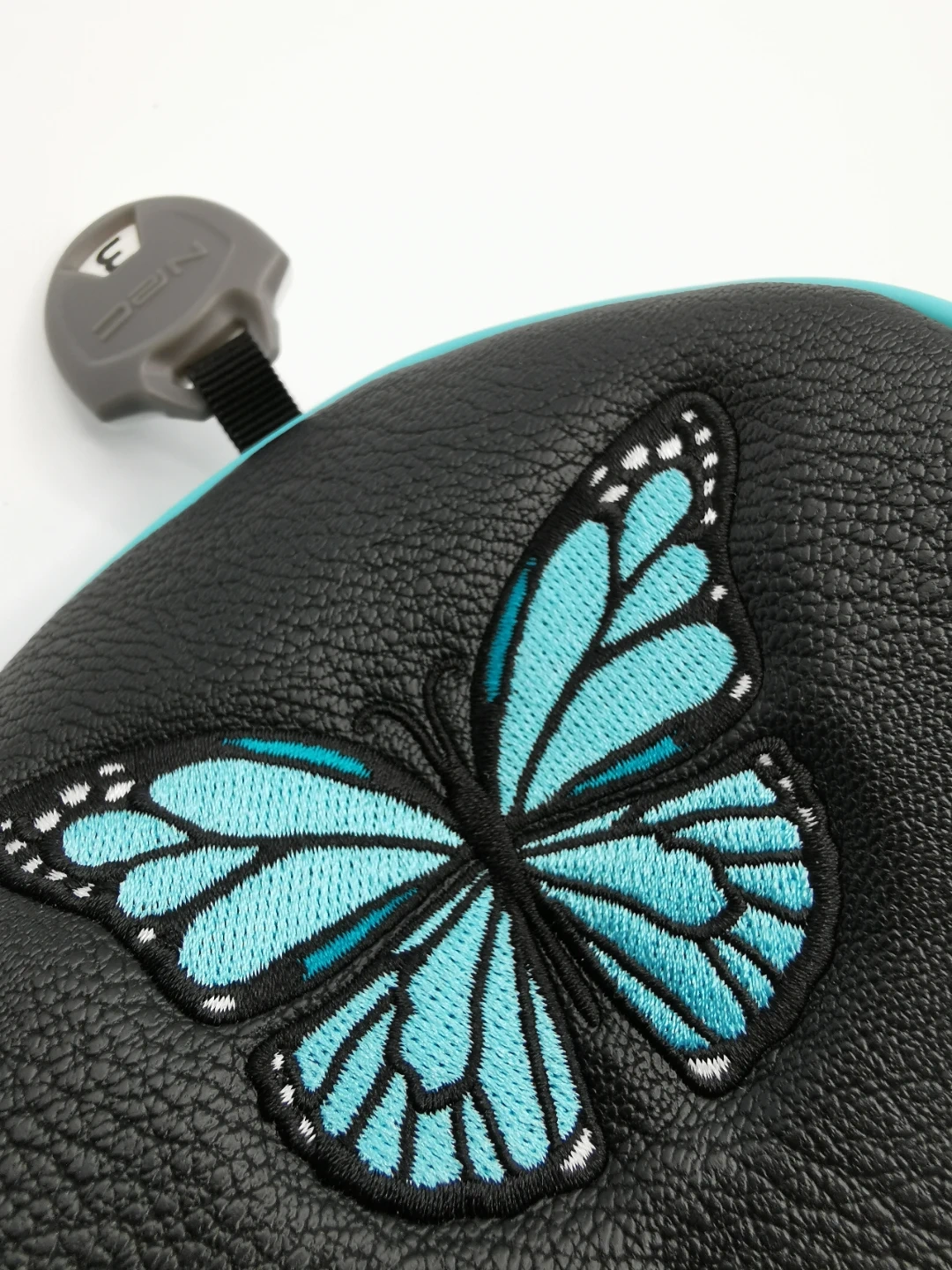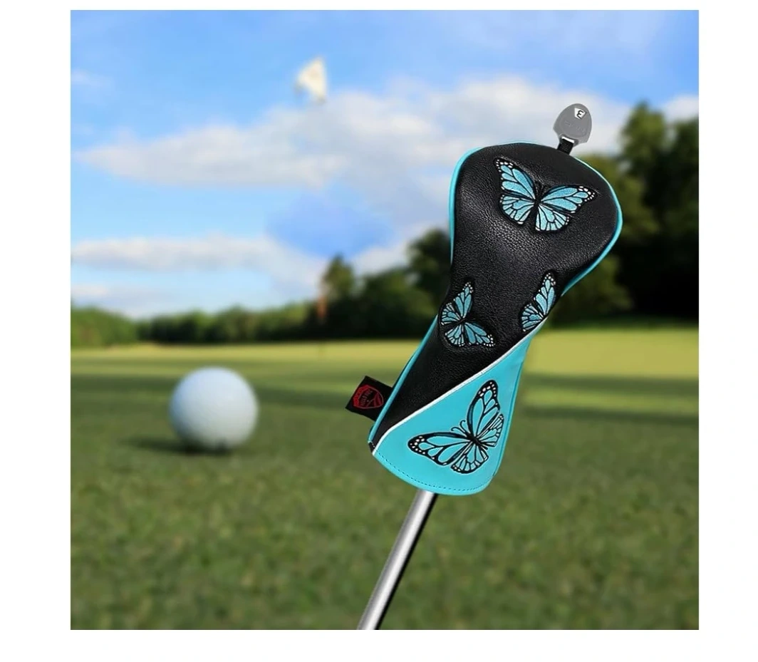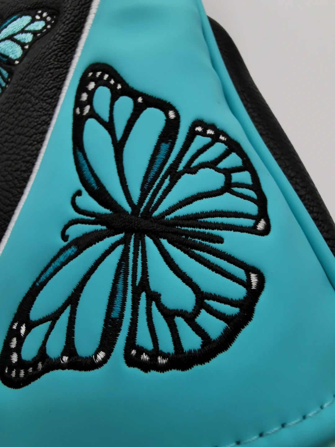 728Elevate your golf game with this stylish Vaveren golf wood headcover, designed with a black and turquoise butterfly pattern for a touch of elegance on the green. This eye-catching headcover is brand new, ready to protect your club and add some flair to your golf bag. I think the butterflies are a great addition of personal style to your golf bag! Features: * Brand: Vaveren * Colour: Black with turquoise butterfly design * Type: Wood headcover Pickup at Bur Oak @ McCowan Markham everyday and at 70 Queens Wharf Rd, downtown Toronto around noon most of Sundays.