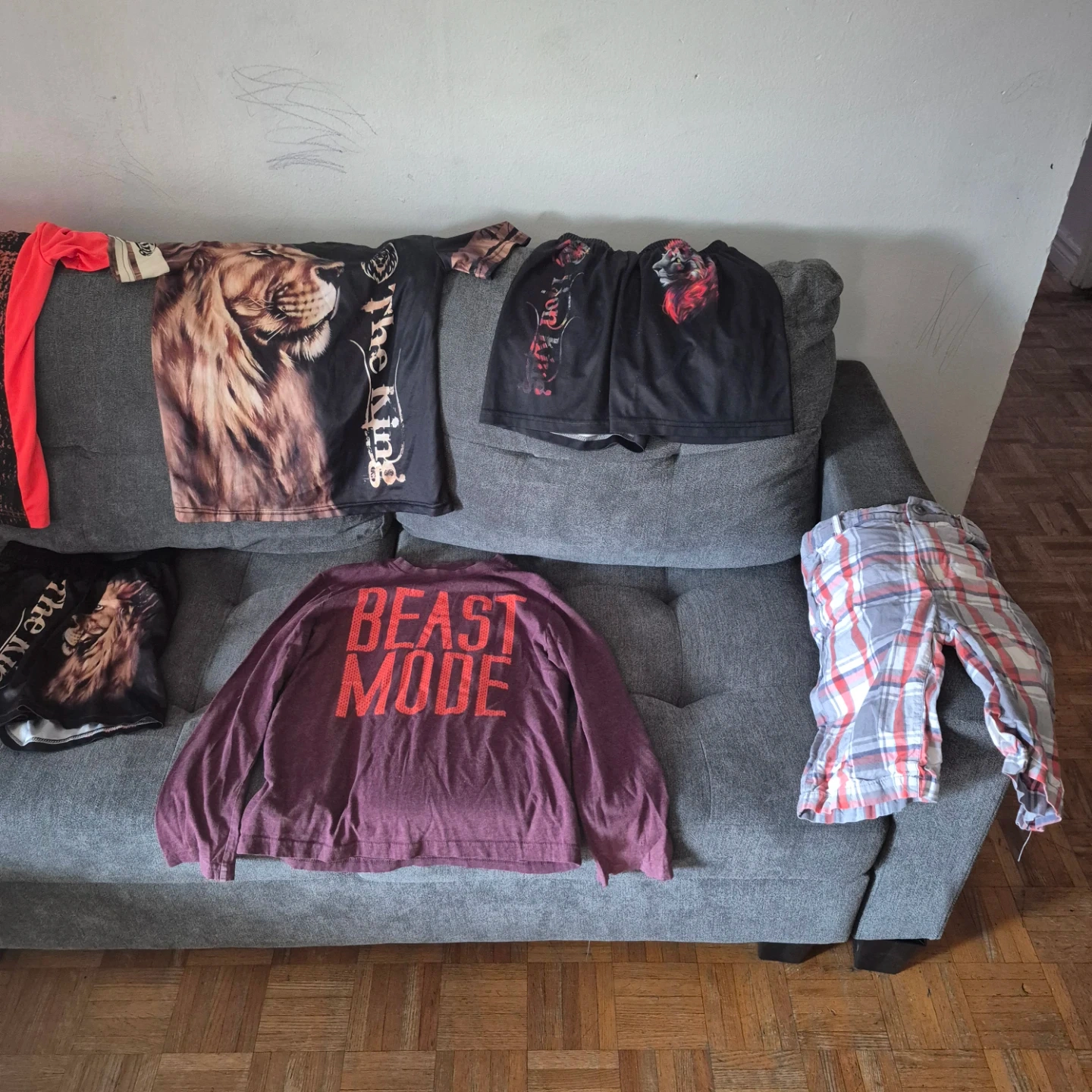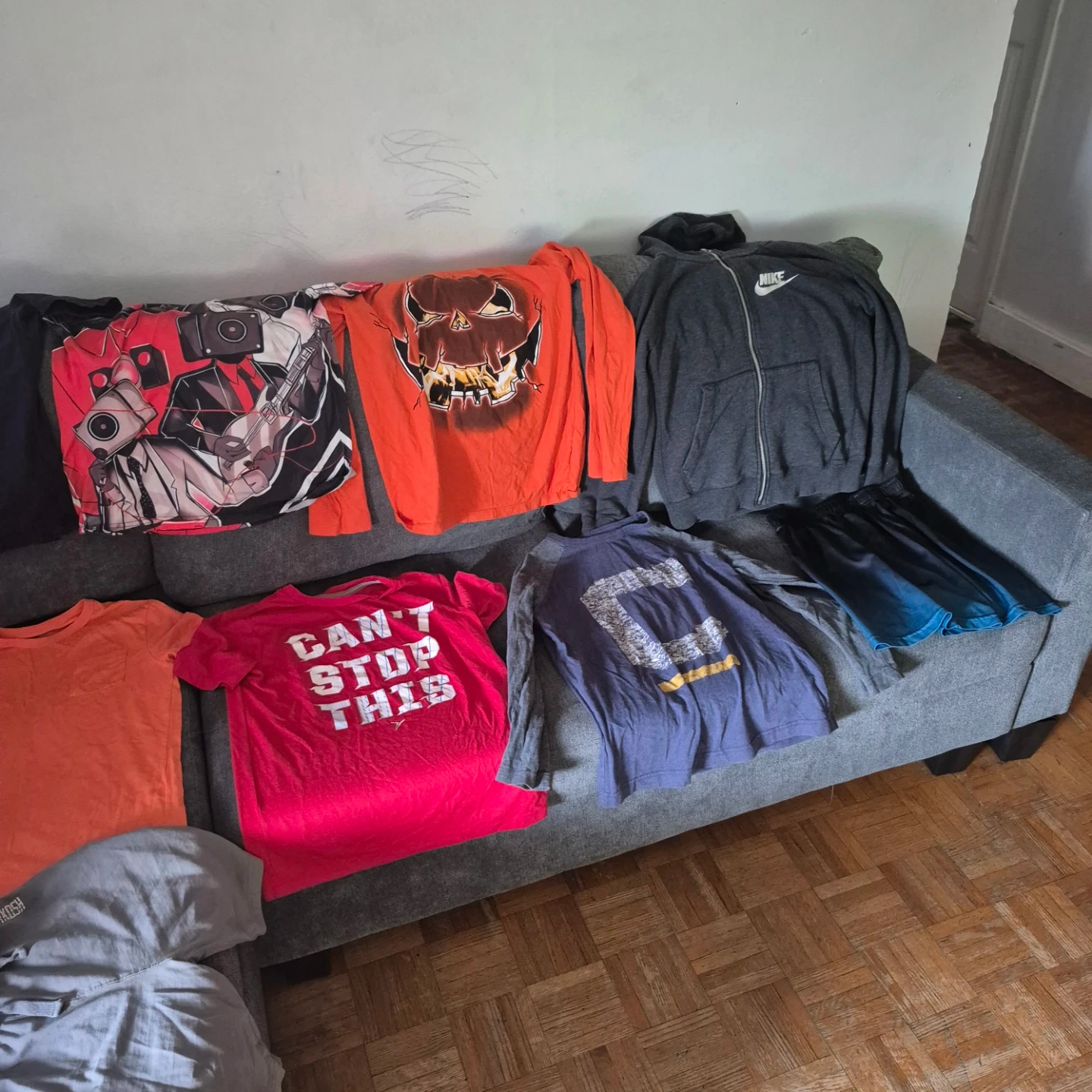 60Selling a bundle of boys' t-shirts in various colours and designs. Perfect for everyday wear! They are shorts and a sweater aswell. Boys size 10-12