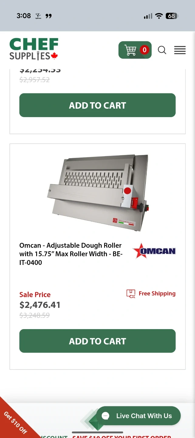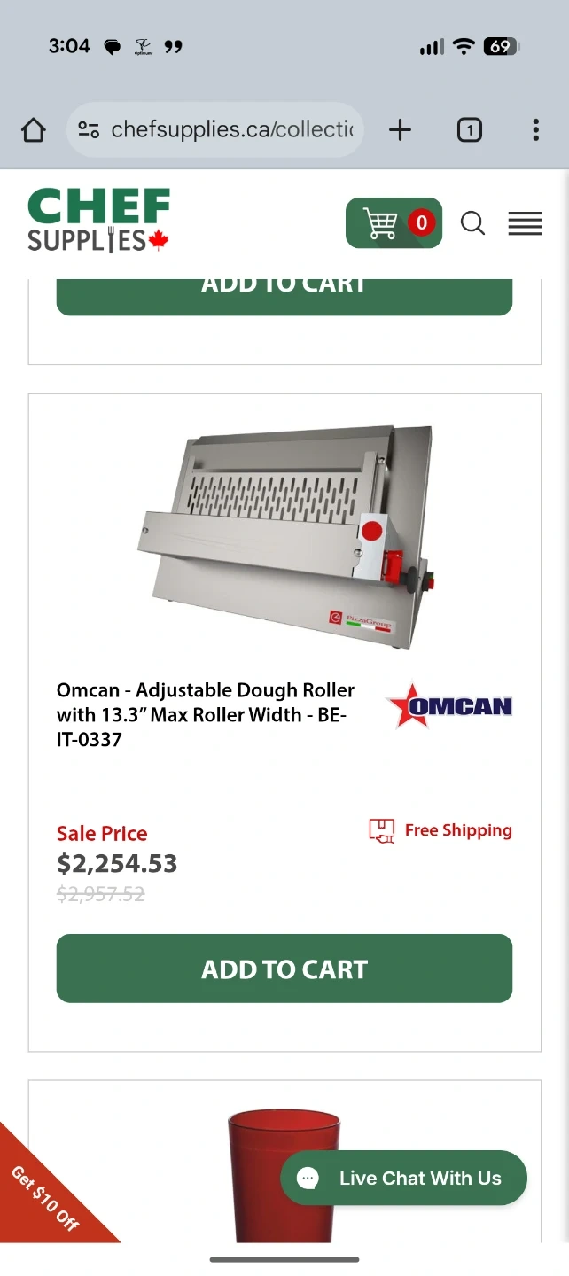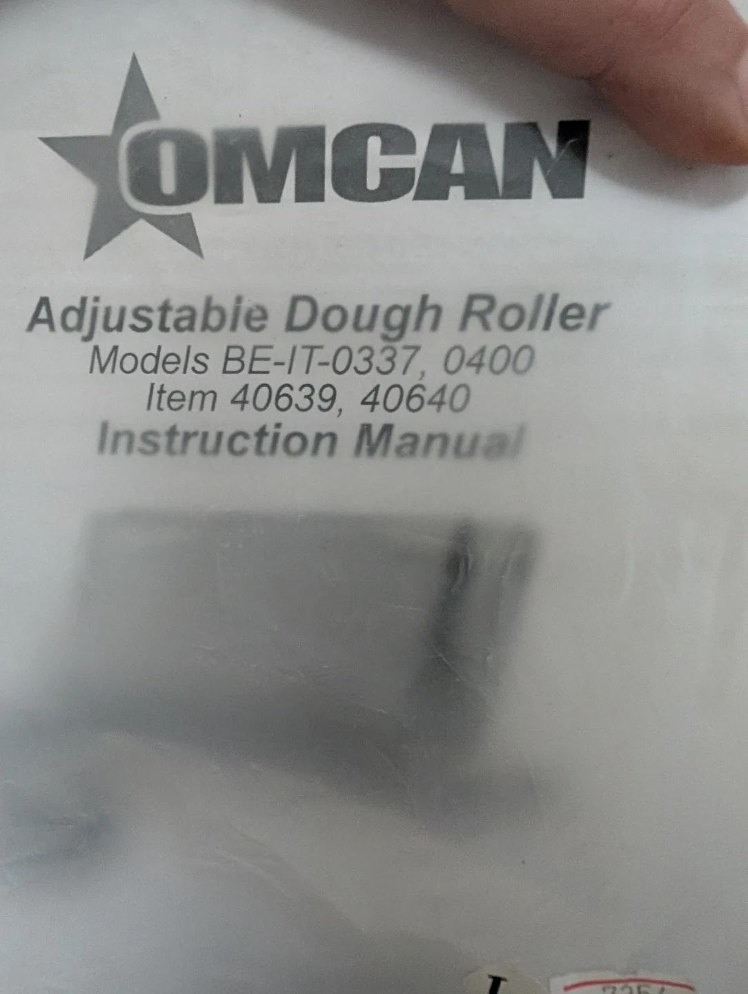 Selling an OMCAN adjustable dough roller. Please view photos. It comes with the instruction manual. It has never been used and sat in storage for 2 years.