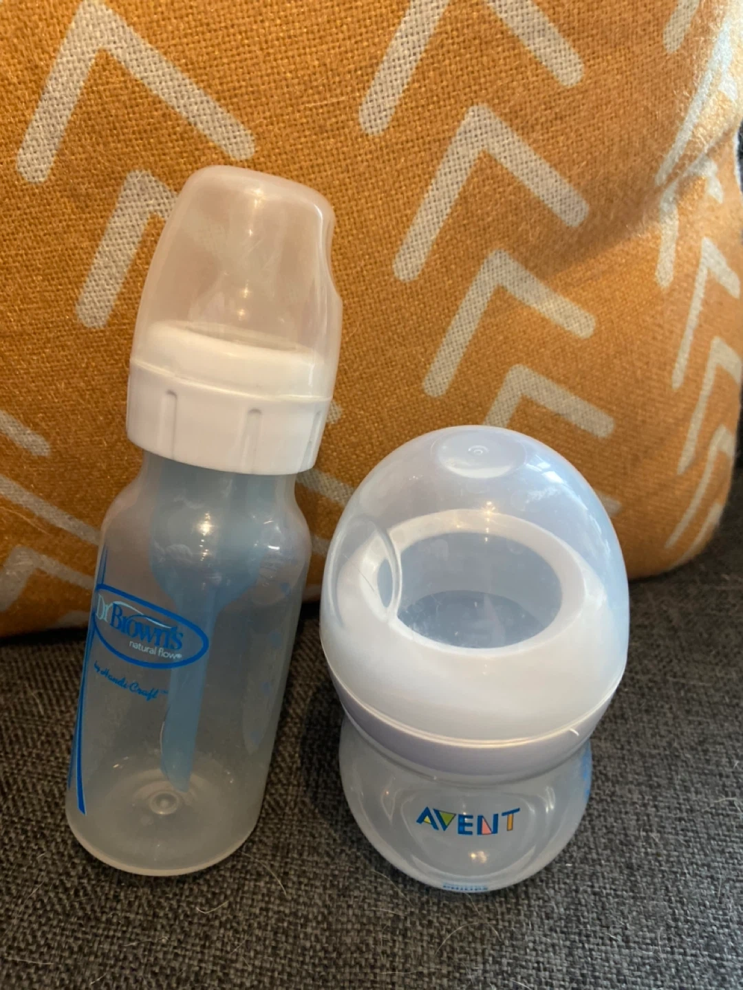 Giving away two baby bottles! One is a Dr. Brown's Natural Flow bottle and the other is an Avent bottle. Both are 4oz. Both are in good condition and ready for a new little one!