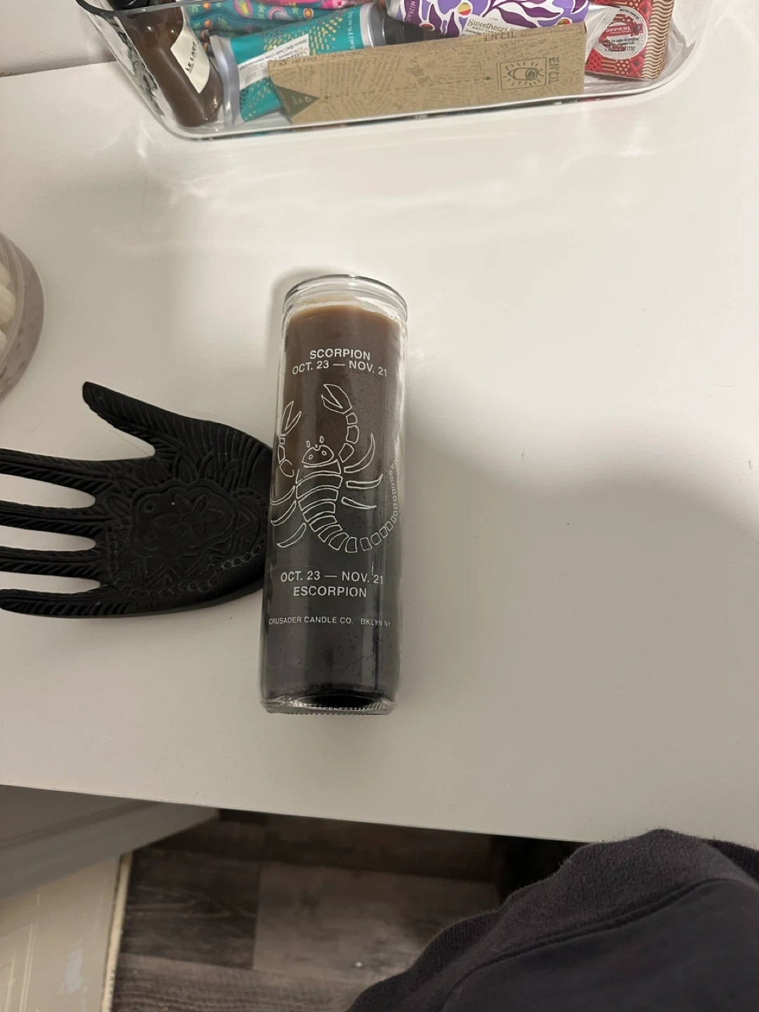 Selling a Crusader Candle Co. Scorpion Candle. It features a design for those born between Oct 23 - Nov 21. Perfect for adding a unique touch to any room!