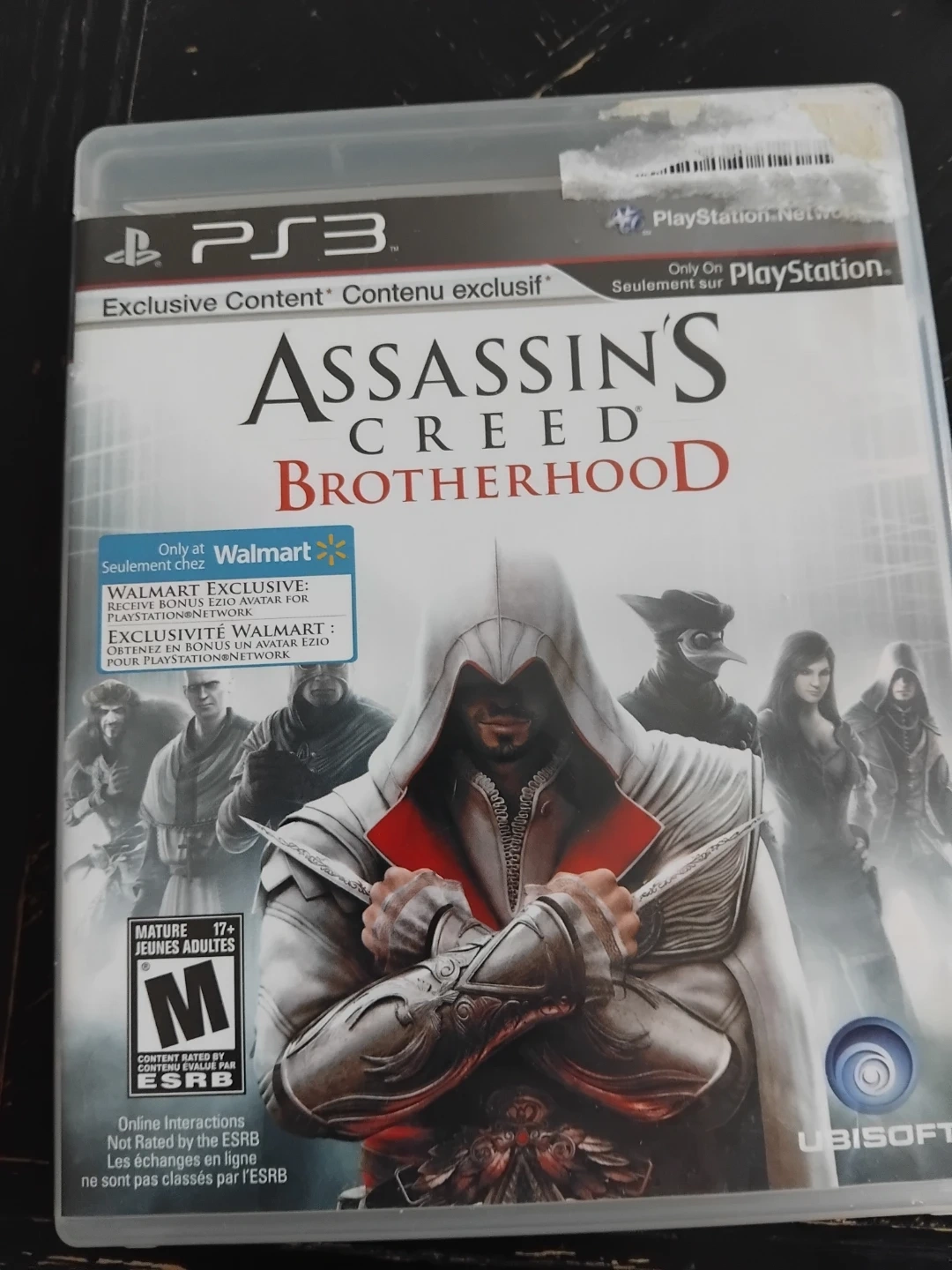 Selling a copy of Assassin's Creed Brotherhood for the PlayStation 3 (PS3). It's the Walmart exclusive version with bonus Ezio avatar for PlayStation Network