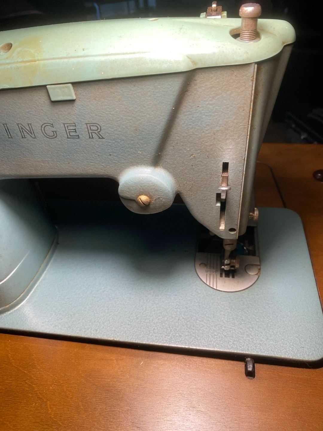 Selling a vintage Singer sewing machine, still a cool piece of history. Perfect for someone who appreciates vintage items or wants a project!