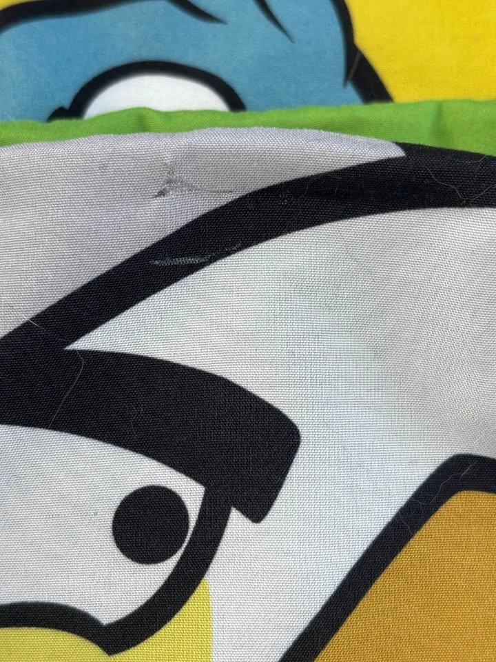 It’s really cute and in very good used condition, although there’s a small area of wear to a pillow case (see the closeup in the photos).