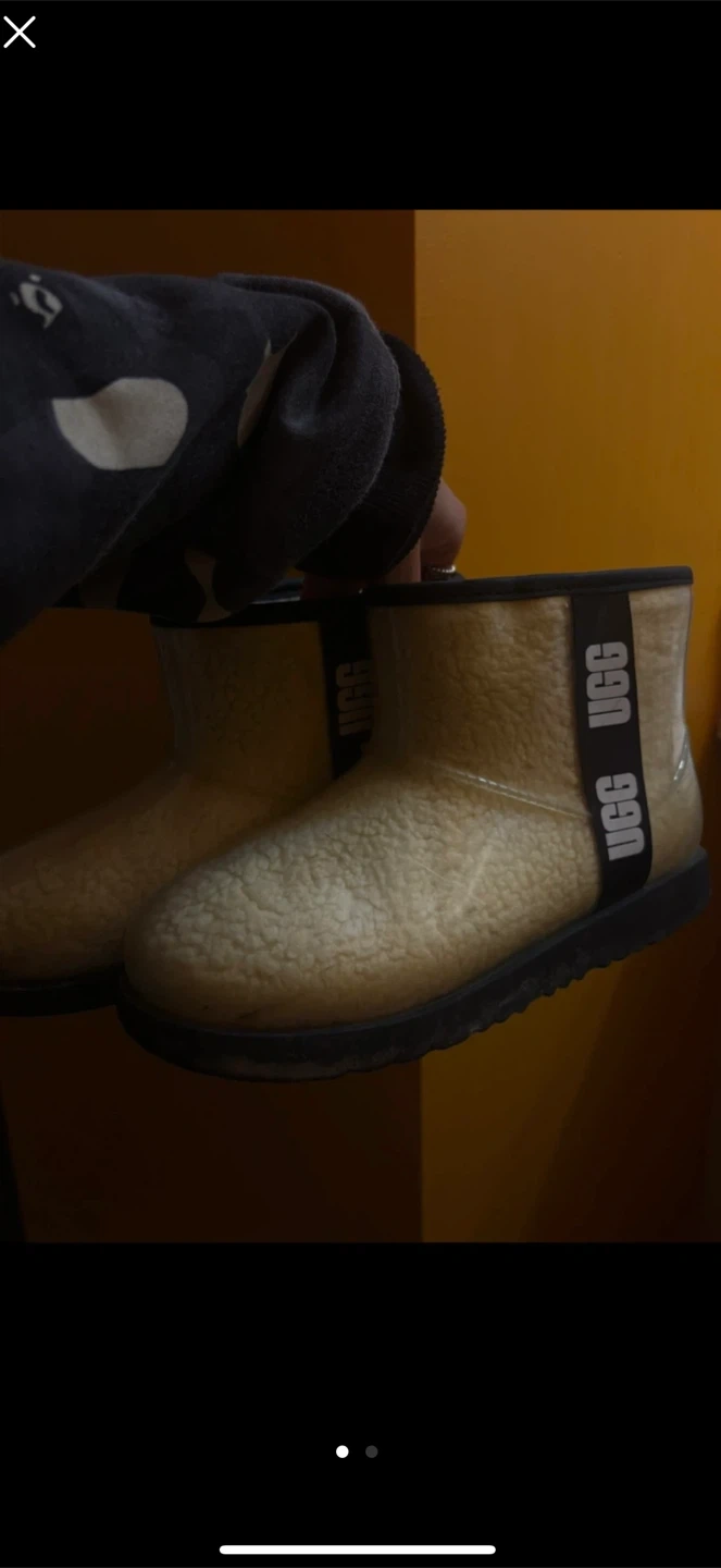 Selling a pair of UGG Classic Clear Mini Boots in a size 5. These boots are super stylish and in great condition. The UGG label is clearly visible on the side. They're perfect for adding a bit of flair to any outfit!