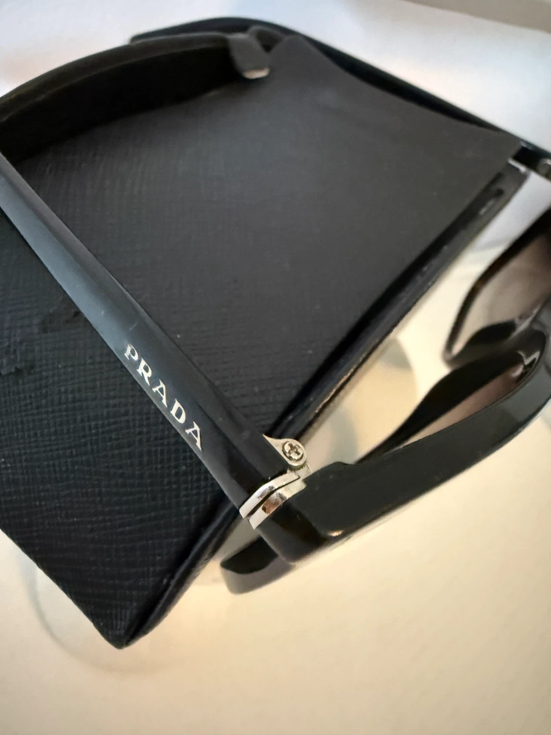 Selling a pair of Prada sunglasses in black. They come with the original case and a Prada cleaning cloth. Stylish and in great condition!