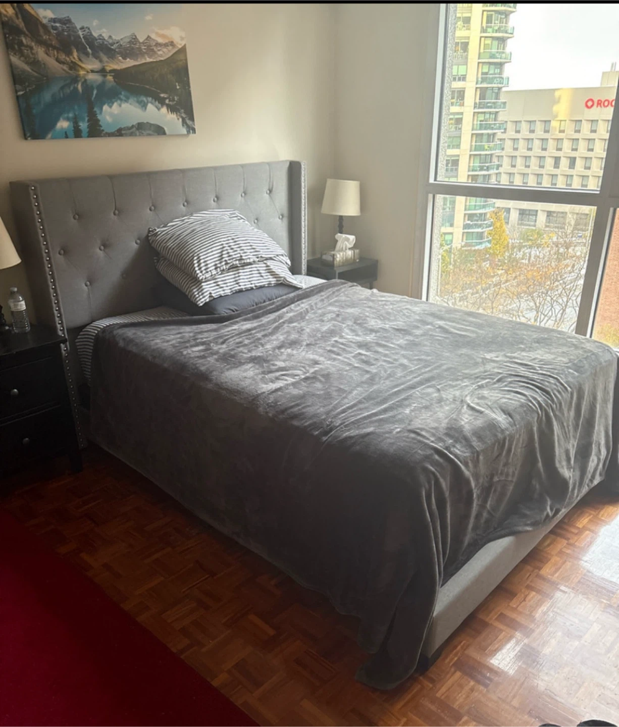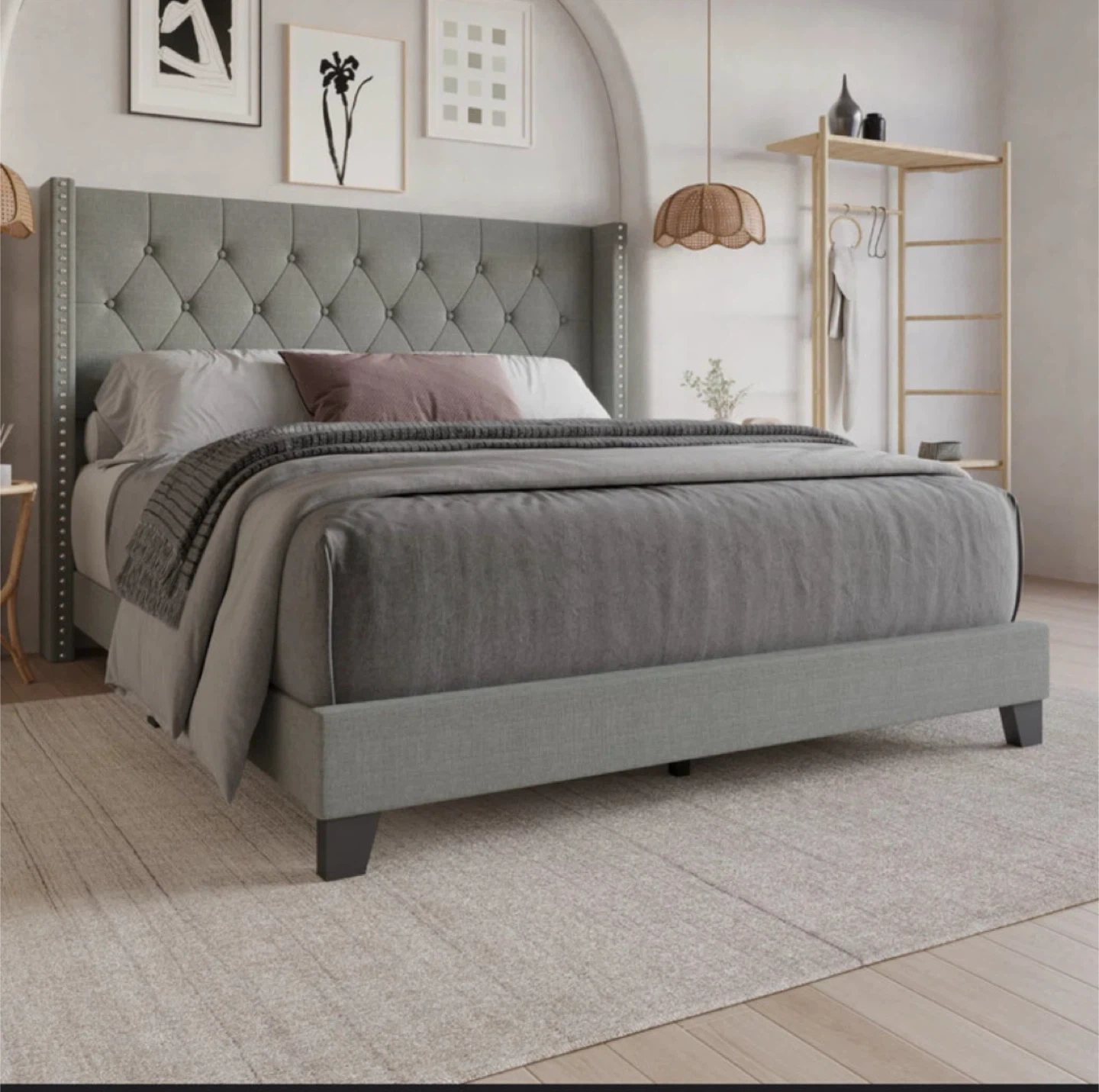 Queen size Bed Frame with Mattress & Foundation .- Grey