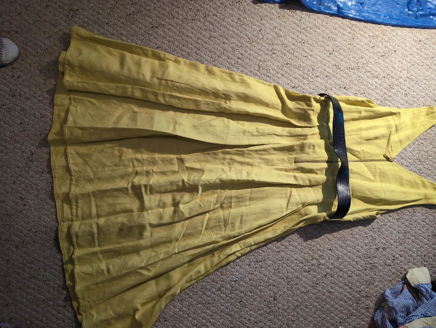Selling a lovely yellow dress from Donna Karan New York. It's a size 12 and comes with a stylish black belt to cinch the waist. Perfect for a sunny day out! 100% linen