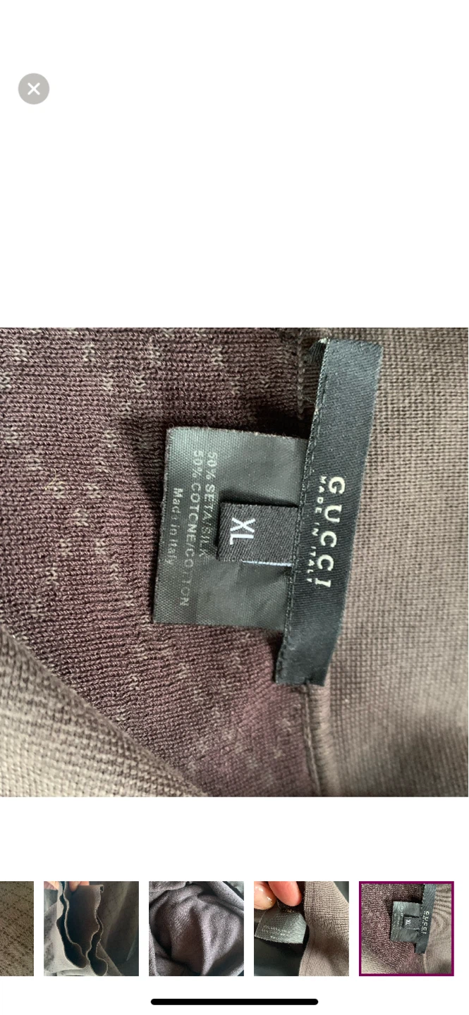 Here's a Vintage Gucci brown polo-style sweater! It's in great condition and has a unique patterned knit.