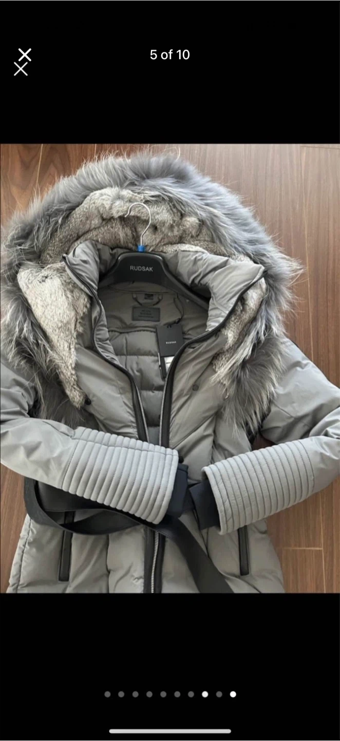 Selling a Rudsak down puffer coat! It's a stylish and warm coat perfect for the Canadian winter. Features a fur trim and a belted waist for a flattering fit. Great for staying cozy and fashionable! New brand and never used.