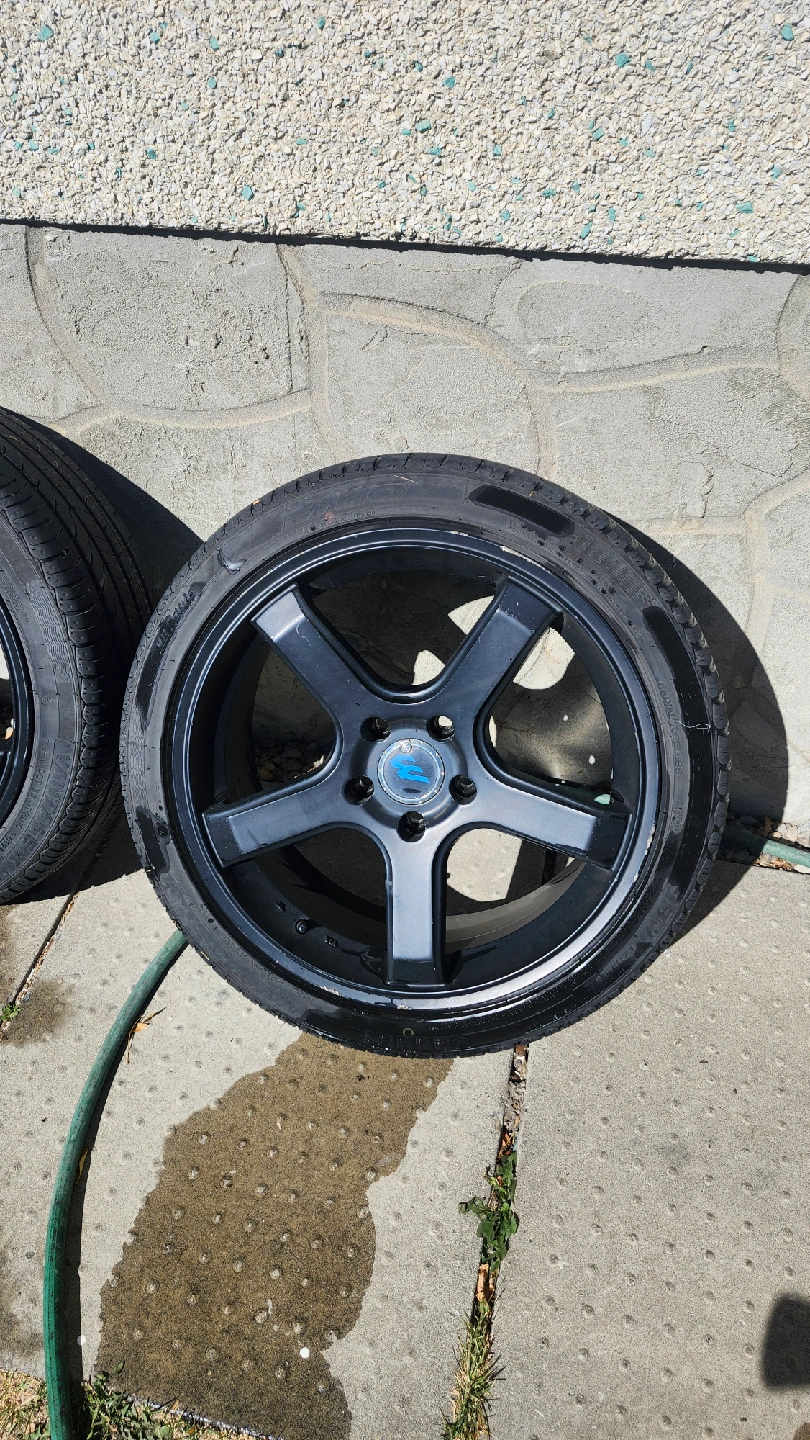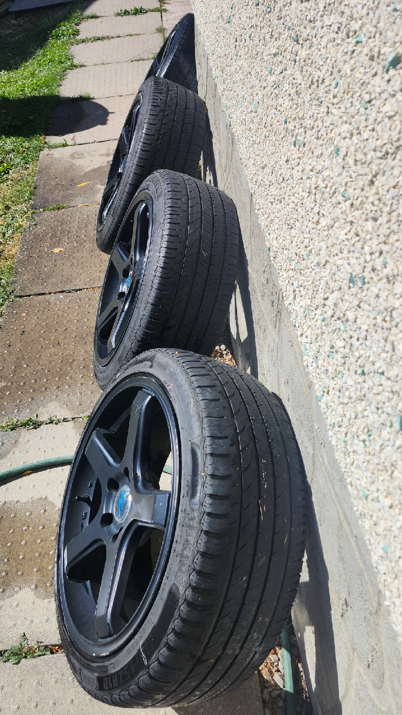 For sale are Four 19 inch Rims with All season tires on them. Two have 75% tread remaining and the other two 50%. They were on a 2 wheel drive vehicle hence the difference in the tread wear.