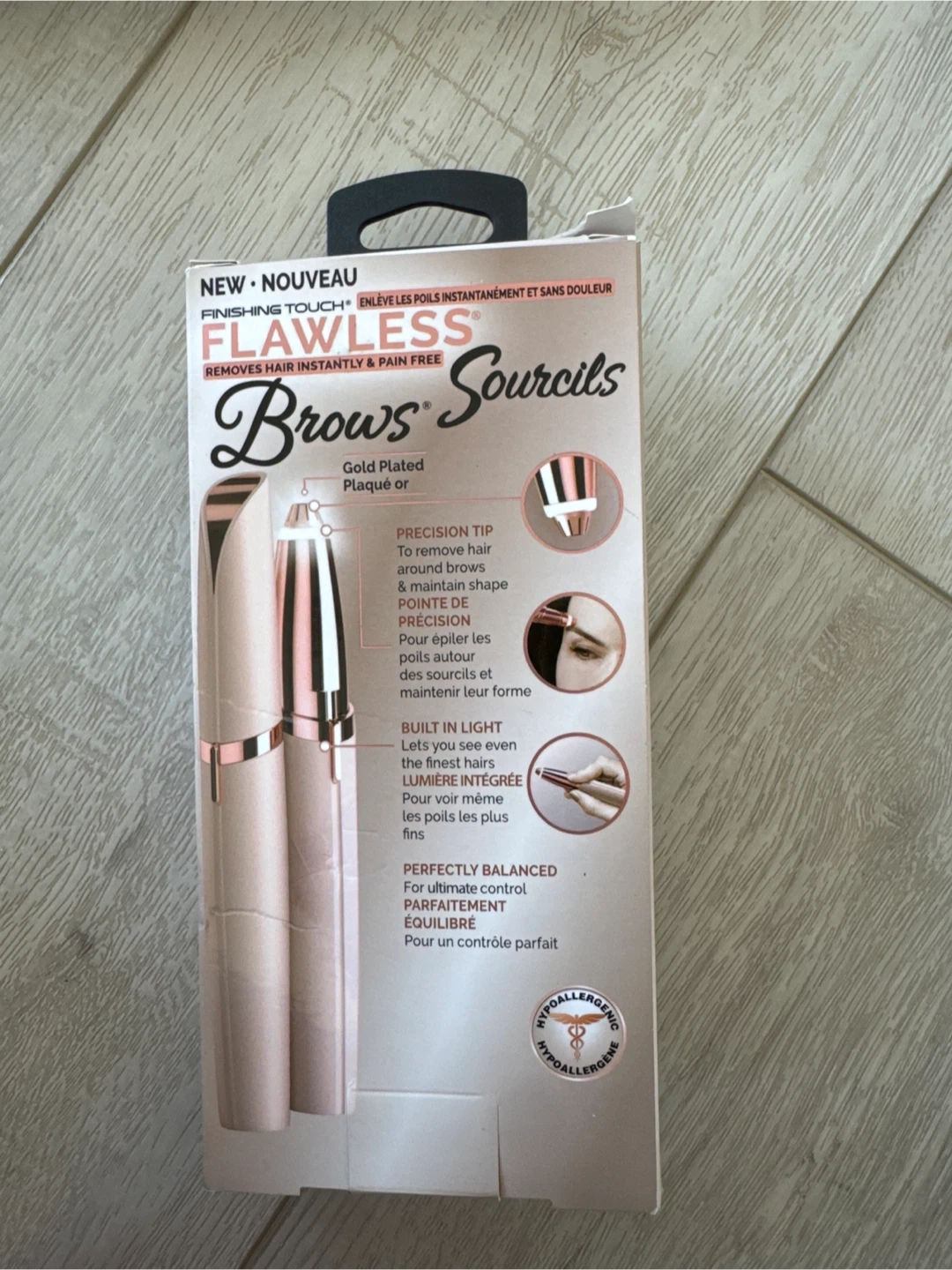 I'm selling a brand new Finishing Touch Flawless Brows hair remover! It removes hair instantly and pain-free. It's perfect for eyebrows and gentle on all skin types. The precision tip helps to remove hair around brows and maintain shape. It also has a built-in light to let you see even the finest hairs. Perfectly balanced for ultimate control!
