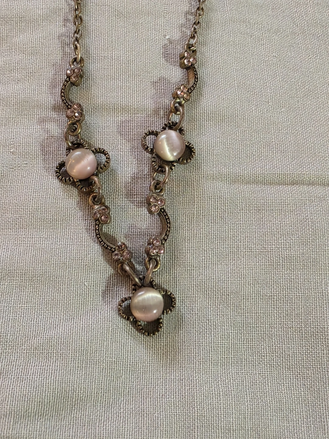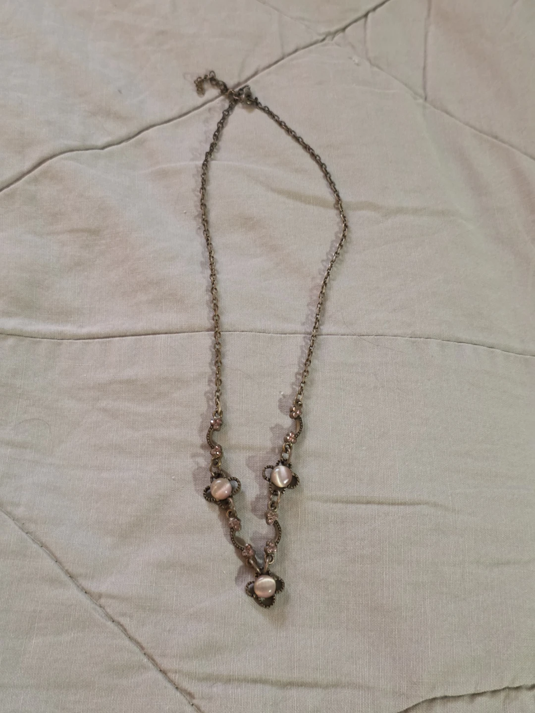 Selling a lovely vintage style necklace. It has a beautiful design with floral accents and faux pearl details. Perfect for adding a touch of elegance to any outfit!