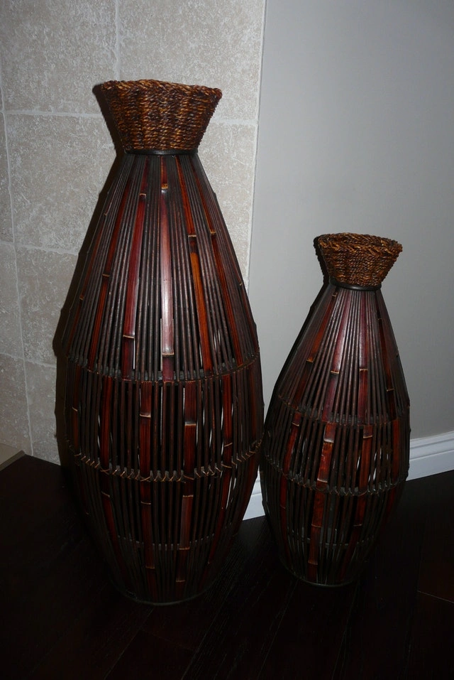 Big hand-made decorative piece $45 Height: 37.7 inches Width: 13.7 inches Small hand-made decorative piece $35 Height: 28.3 inches Width: 10.6 inches Colour: dark brown Condition: excellent condition